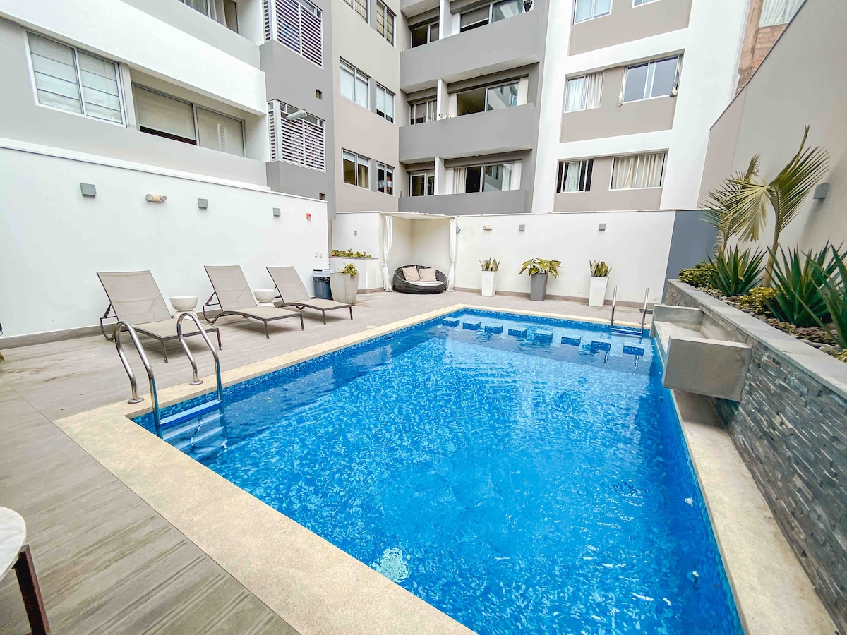 Modern and cozy apartment on the 8th floor of a building with 24/7 security, just steps away from Kennedy Park, the Miraflores Boardwalk, Larcomar, and the National Stadium. It’s close to restaurants, cafés, supermarkets, pharmacies, and banks. The building features a pool, gym, business center, kids club, BBQ area, and 24/7 security. The apartment offers high-speed Wi-Fi, a fully equipped kitchen, washing machine, and free parking — perfect for family trips, work, or relaxation.