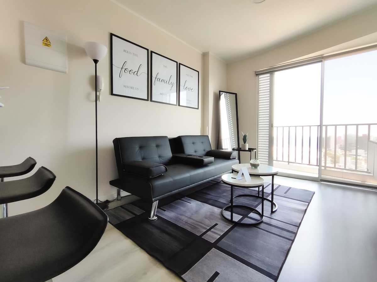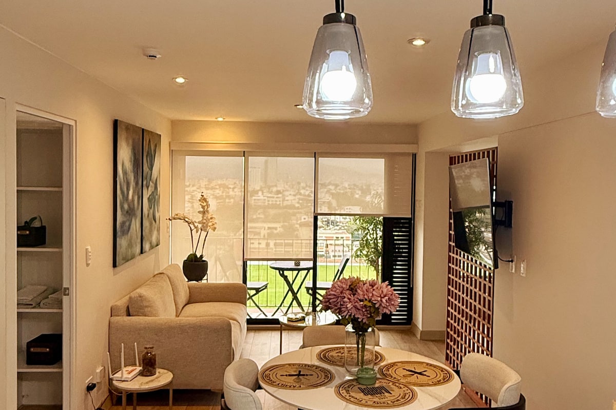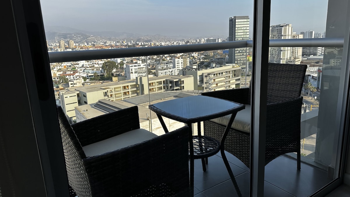 Live Lima from the 20th floor with stunning views! 🛏️ KING bed 📺 65" TV 🛋️ Comfy sofa 🍳 Fully equipped kitchen 🏊 Pool, 🔥 BBQ, and 🍸 Lounge Bar (subject to availability) 🚗 Parking for USD 8/night (subject to availability) 🧳 Store luggage before check-in or after check-out 📍 Prime location between Miraflores, San Isidro, and Surquillo 🌟 With a 4.96 rating and Superhost status, I offer you a comfortable and safe stay. 📅 Book now and enjoy Lima from the top, with style and comfort!