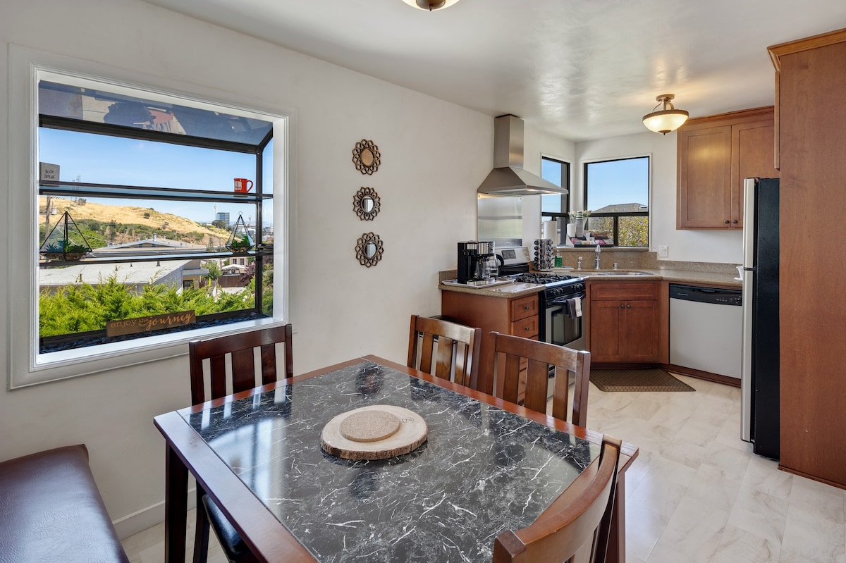 Welcome to our hilltop home located in a beautiful neighborhood with amazing panoramic views. Convenient to public transportation, major freeways, restaurants, and downtown. Perfect for romantic getaways or working from 'home'. - Contactless Check-In, Separate Guest Entrance - Cozy En-Suite Bedroom w/Queen Bed - Bright Living Space & Kitchenette - Guest Deck & Outdoor Garden Exclusively for Guests - Easy Parking