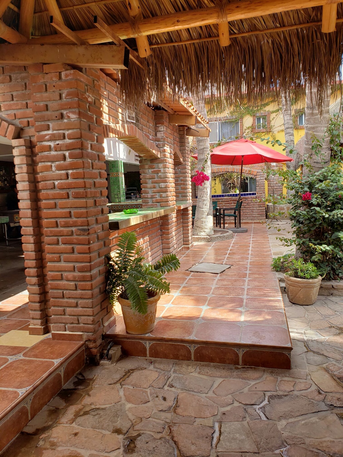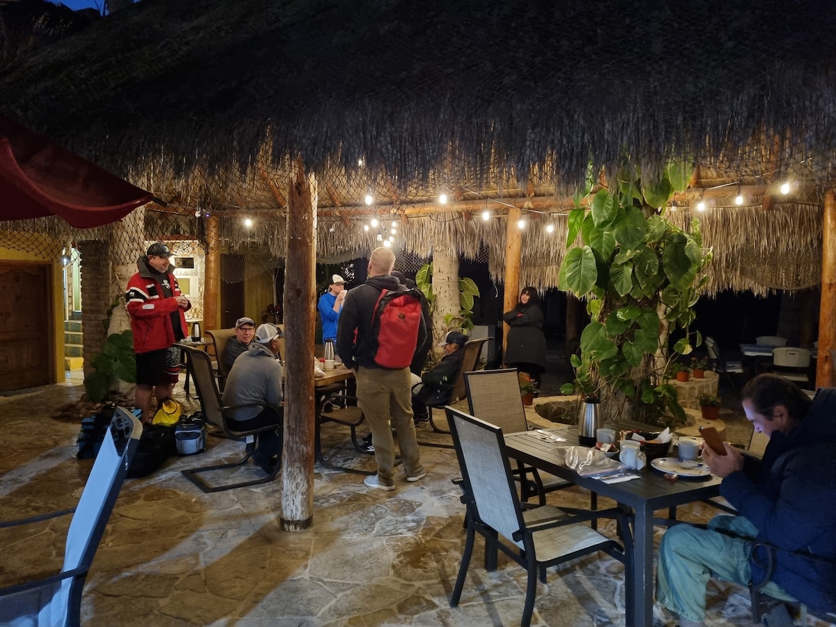 disfruta del encanto q te ofrece la propiedad alcatraz en bahia magdalena, enco traras un lindo jardin con varias palapas y areas derelajacion asi como una cocina exterior . podras disfrutar del contacto con la naturaleza en medio de una rica comida o un cafe de mañanita.