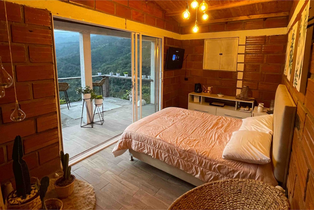 Cabaña en guadua, diferenciada y tranquila, con mucho estilo, confort y una vista única a la Piedra El Tabor. Ubicada en una zona tranquila y rodeada de bosque, esta cabaña combina arquitectura auténtica, confort y conexión directa con la naturaleza, está diseñada para quienes buscan descanso, privacidad y autenticidad. A solo minutos del parque principal, cascadas y ríos, este espacio es ideal para personas aventureras, amantes de la tranquilidad, el diseño y la naturaleza.