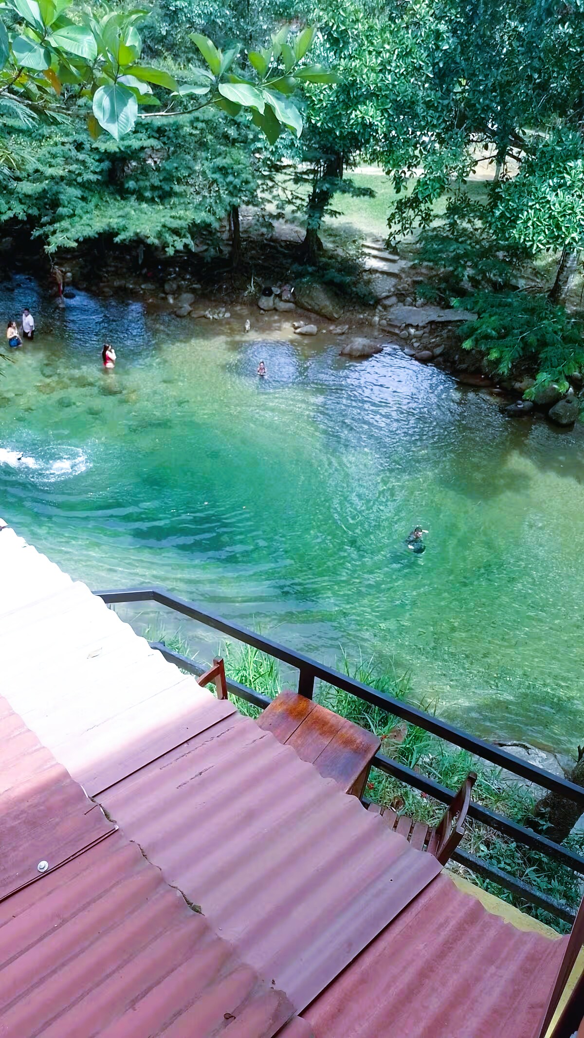 Arriving here, a family-owned and operated, sustainable mini EcoLodge (only five cabanas onsite), you will find a natural sanctuary. We invite you to connect through the magnificent tropical gardens, the diverse and beautiful species of birds, a pool with natural water, a hammock oasis to rest, and a lovely river that you can access from the Ecolodge. We hope you enjoy this paradise.