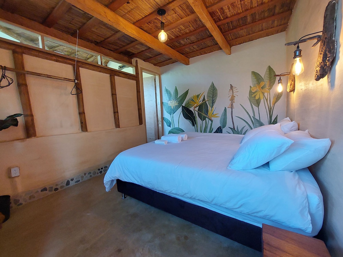 Habitación cómoda y bien iluminada con dos camas individuales, perfecta para amigos, parejas o viajeros que buscan descanso y tranquilidad. Un espacio sencillo y acogedor, con buena ventilación y acceso a zonas verdes, hamacas y naturaleza. Ideal para relajarse después de explorar los charcos y paisajes naturales de San Rafael.
