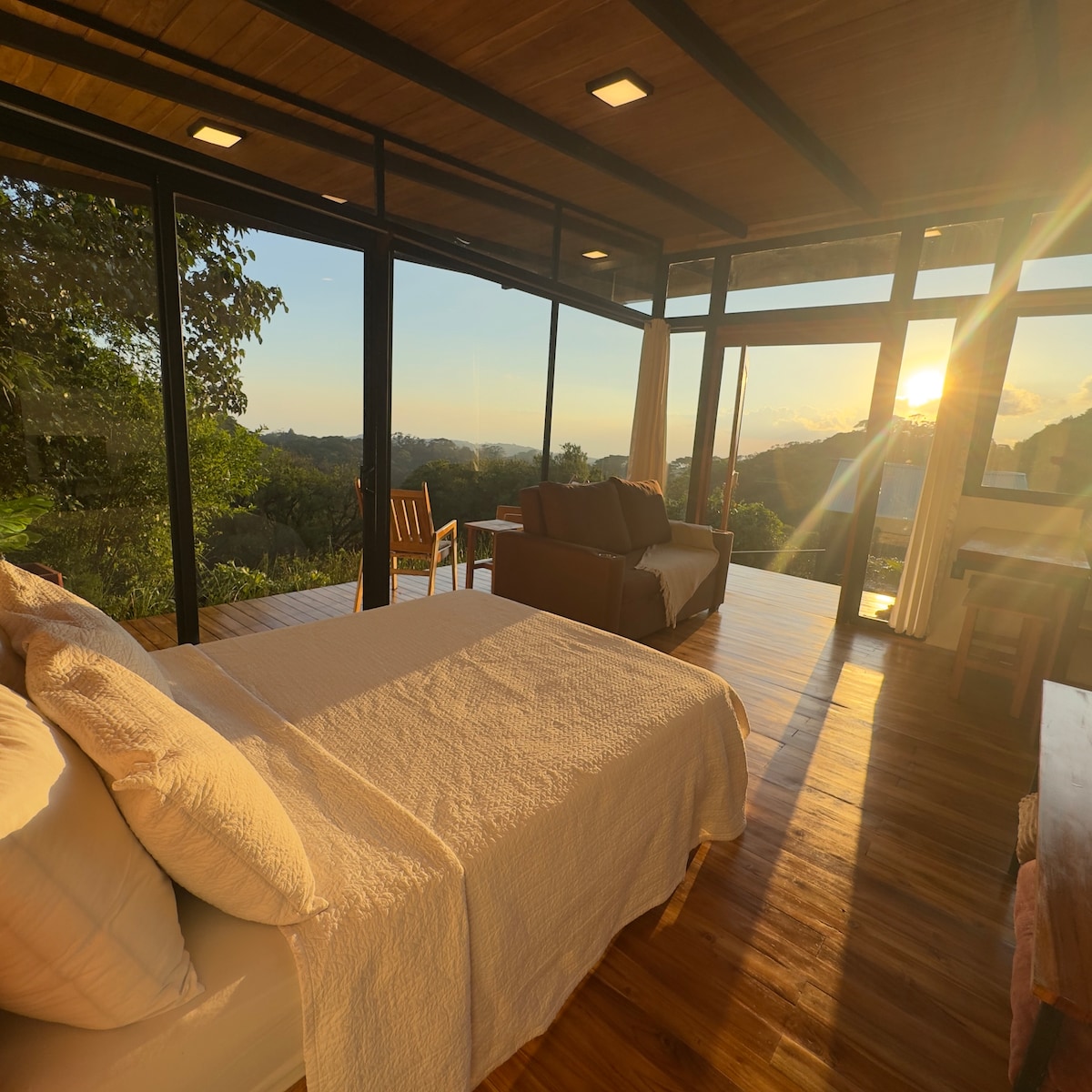 Relájate en este espacio tan tranquilo y elegante. A 1 km del centro de Fortuna y a 300 m del Salto. Camino a la catarata de la Fortuna. El loft cuenta con terraza deck, piscina, jardín, un cuarto con cama king, baño, cocina totalmente equipada, centro de lavado, parqueo privado, AC, acabados de lujo, vistas extraordinarias hacia el volcán y en contacto con la montaña, ideal para citas románticas, relajarse y pasarla bien lejos del bullicio de la ciudad, pero a solo 2 min del centro de Fortuna.