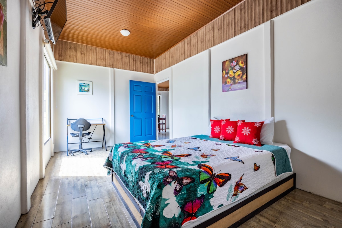 Disfruta de la sencillez de este alojamiento tranquilo céntrico, privado ,construido Rustico Artesanalmente y con un concepto de aves de Costa Rica somos una familia Costarricence , Artistas Naturalistas ,tenemos un pequeño jardin al lado de la cocina al aire libre donde podras ver colibries ,maripoas ,orquideas ect, y con vista al Majestuoso Volcan Arenal a solo 5 minutos del Centro de la Fortuna