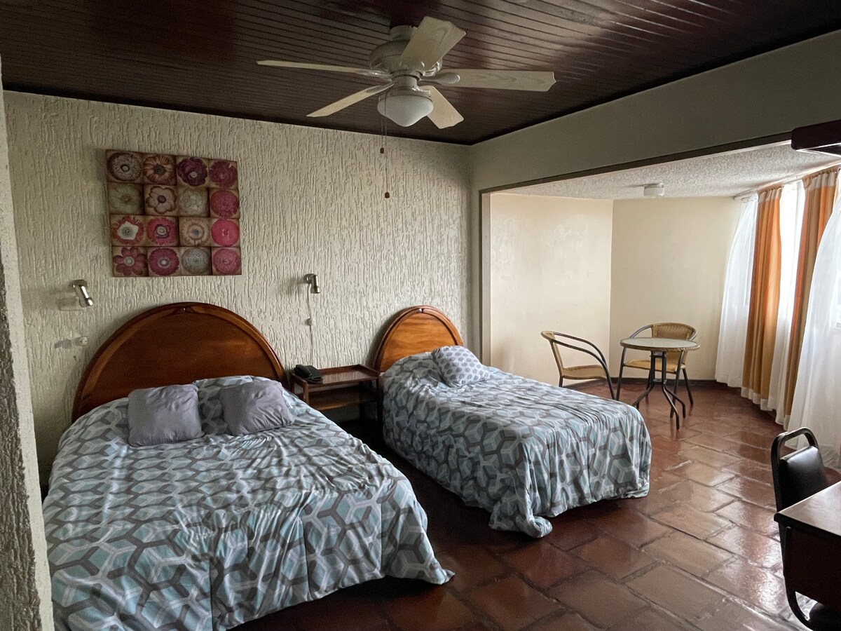 You are going to love these rooms. My property has a beautiful view of the Arenal Volcano. It is just 250 meters north from la Fortuna downtown. One bedroom has air conditioner, one king bed, one fan and a 40 flat screen TV and the other has 2 fans, air conditioner too, one king bed and One Queen bed. . Also you will have private parking lot. There is wifi. We do not accept pets. Shared kitchen will not be available anymore after April 16, 2023.