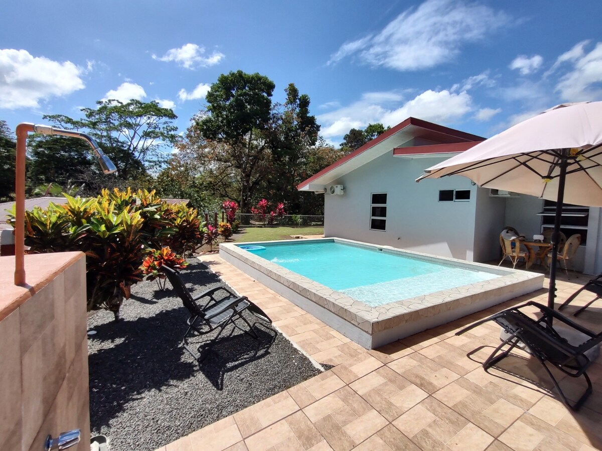 This beautiful house is fully equipped and furnished for 7 people. The house is located in a private condominium complex ideal for short stays during your vacation in the beautiful area of La Fortuna de San Carlos, Costa Rica. Located only 20 minutes away (by car) from La Fortuna de San Carlos this house has 3 rooms with A/C, private pool, security 24/7, free parking for 4 cars, WIFI throughout the house, integrated Living-Dining-Kitchen and 2.5 bathrooms just perfect for your conform.