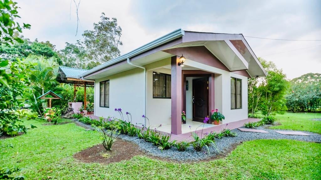 Private house. 3bedrooms 2 full bathrooms HOT water.  kitchen, dining room, living room . Private driveway and parking. Air conditioning. Porch.  stroNg WIFI. Paintings by local artist. Nestled in a private nature sanctuary. Frogs!   Blue- jean, Red- eyed, Gaudy. Scarlett Macaws. Toucans. Sit on the dock of  the lagoon, take a peaceful walk on the many creek trails, take a exciting night hike, or ask Maricel to teach you about the medicinal plants. Perfect stop from San Jose to La Fortuna 702.