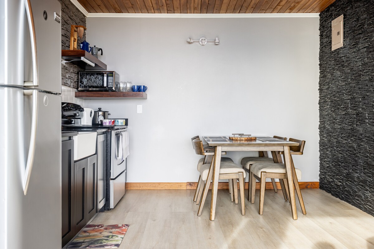 Casa Rural El Mirador, ofrece al viajero cocina complemente equipada, televisión con netflix o youtube, aire acondicionado, y la paz que solo en el campo podrás encontrar. Además se incluyen toallas de baño y los elementos básicos como champú, crema corporal y jabón. El único lugar que cuenta con agua caliente es la ducha, ya que Costa Rica es un país cálido todo el año por lo que no se acostumbra a colocar agua caliente en los demás grifos.