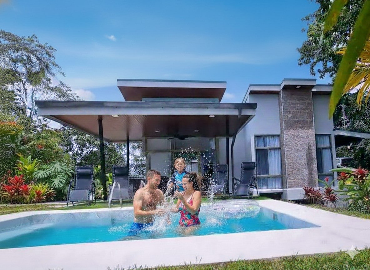 Hermosa villa de 1.122 pies con una ubicación excepcional al lado del bosque, una maravillosa piscina temperada en infinito y un espectacularjacuzzi que parece tocar toda la naturaleza que la rodea, con extraordinarios acabados de lujo y aire acondicionado en toda la casa para tu comodidad te espera Casa Colibri Esmeralda. Esta casa tiene capacidad para 6 personas, cuenta con 2 dormitorios y 2.5 baños. Estamos convenientemente ubicados a tan solo 15 minutos del centro de La Fortuna.