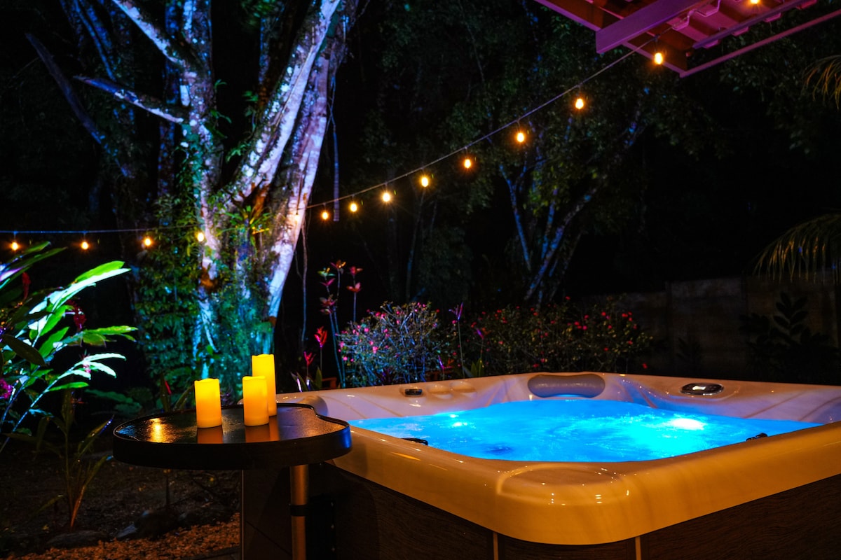 Escape to your own tropical hideaway in the heart of La Fortuna! 🌋 🌴✨ This stylish villa offers a king bed, jacuzzi, private outdoor shower, and a lush rainforest terrace just for you. Stay connected with ultra-fast WiFi, relax with a 55” Smart TV, and enjoy full comfort with A/C, hot water, kitchen, and private parking. Designed for couples or adventurers seeking luxury, privacy, and an unforgettable connection with nature.