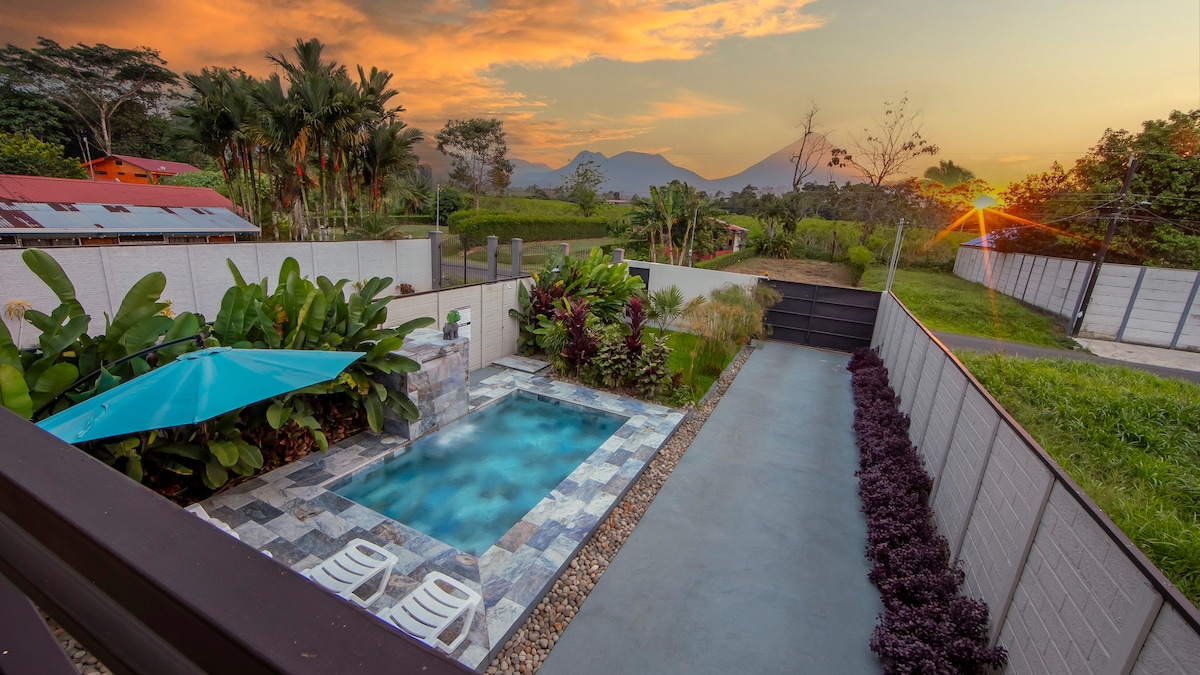 ✨Casa Tigrillo is a cozy, fully equipped house located just 5 minutes from downtown La Fortuna, within a private and secure gated community. Enjoy breathtaking views of the Arenal Volcano and Indio Dormido, stroll through an exclusive biological corridor surrounded by nature, take a refreshing dip in the condo's pool, or savor a cup of Costa Rican coffee while admiring sunrises and sunsets from our terrace We’ll be delighted to host you and make your stay in La Fortuna truly unforgettable 🌄