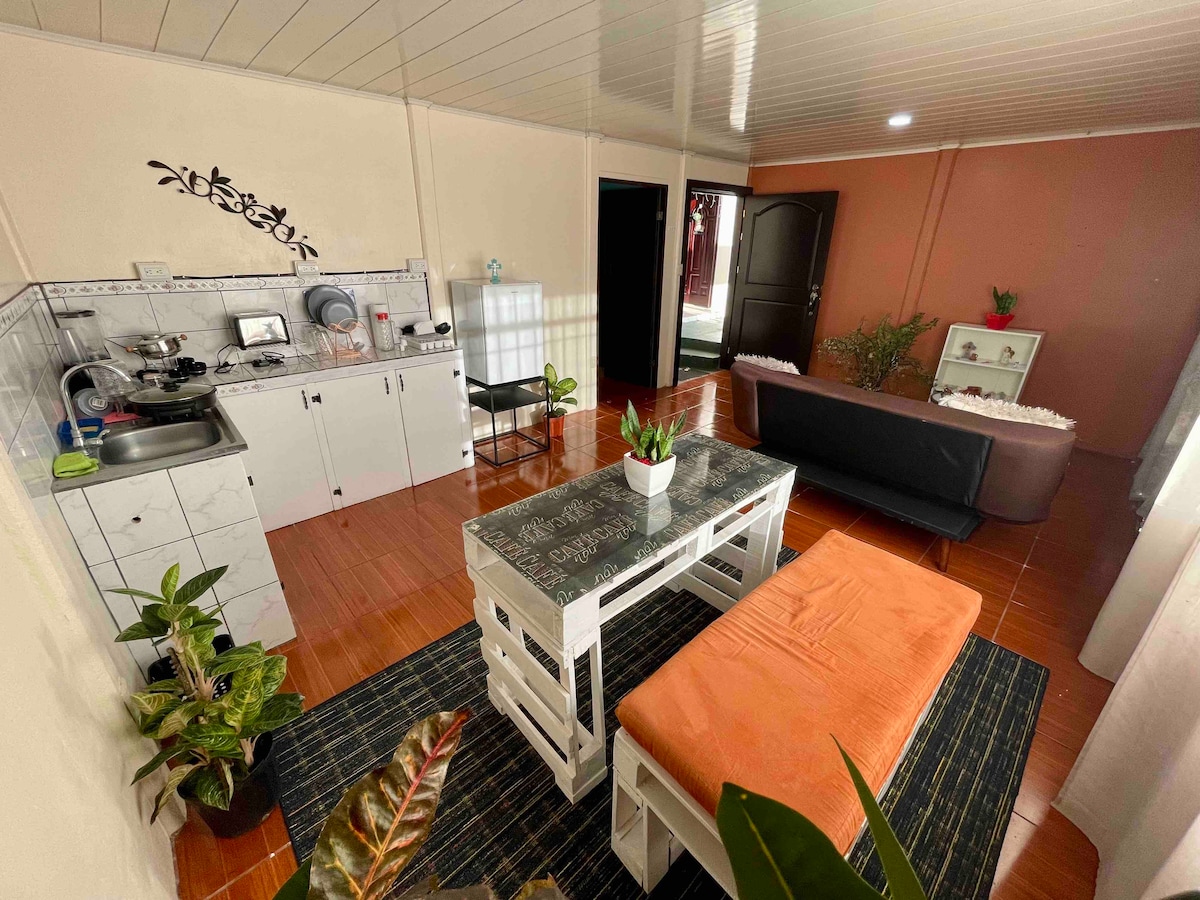 Relájate en este apartamento nuevo, moderno y acogedor, ideal para parejas. Disfruta de una estancia única con una cocina totalmente equipada, un amplio baño, parqueo privado contiguo y jacuzzi completamente privado justo al lado de la habitación, perfecto para momentos de relajación. Ubicado en un vecindario tranquilo y seguro, estarás cerca de los principales atractivos turísticos de La Fortuna. ¡Comodidad, privacidad y la mejor ubicación para una escapada inolvidable!