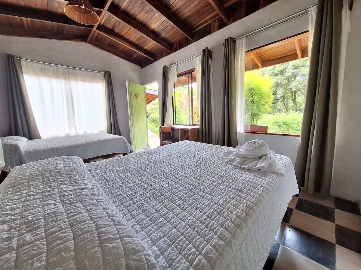 We are a small hotel run by an authentic Costa Rican family. Most of the products we use are harvested on our propierty. We have five spacious and beautiful cabins with different capacities, from the standard rooms for 1-3 pax to the family rooms, a maximum of 10 pax. Our ideology is the greatest satisfaction of our guests. So we are dedicated to providing personalized service in a family atmosphere. Come and enjoy the peace and privacy we offer you in this little paradise.