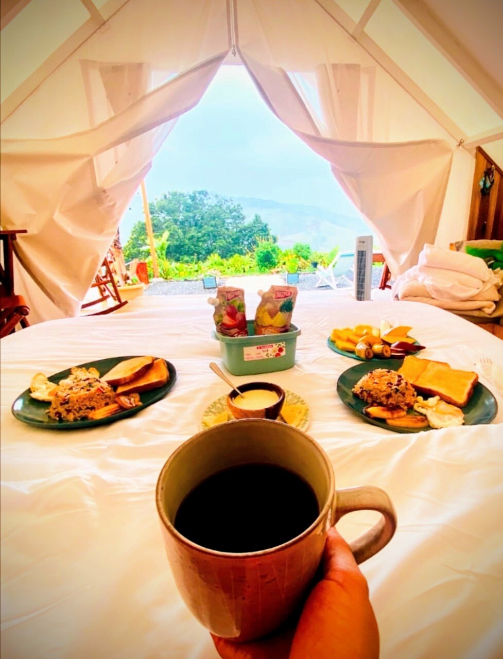 You won’t want to leave this charming, one-of-a-kind place. Immerse yourself in the Alas Glamping experience! The tents are situated in a beautiful private mountaintop property that sits close to the Monteverde Cloudforest. Here you will have the freedom to spread your wings and launch into an authentic experience in our cozy and comfortable plush tents. It’s a perfect place to connect with mother nature offering stunning sunset views, an amazing outdoor shower, complete with HI-SPEED Wifi!
