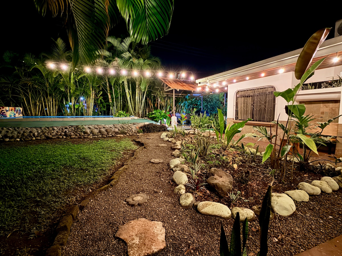 Nestled in a peaceful neighborhood surrounded by nature, this beautiful home is less than a mile from downtown La Fortuna. Within walking distance you’ll find supermarkets, the Coffee & Chocolate Tour, and El Salto river. Just 10 minutes by car to the area’s hot springs and waterfalls. Enjoy a private pool inspired by local springs, BBQ, Wi-Fi, A/C, Netflix, and a fully equipped kitchen for a perfect tropical stay. 🌿
