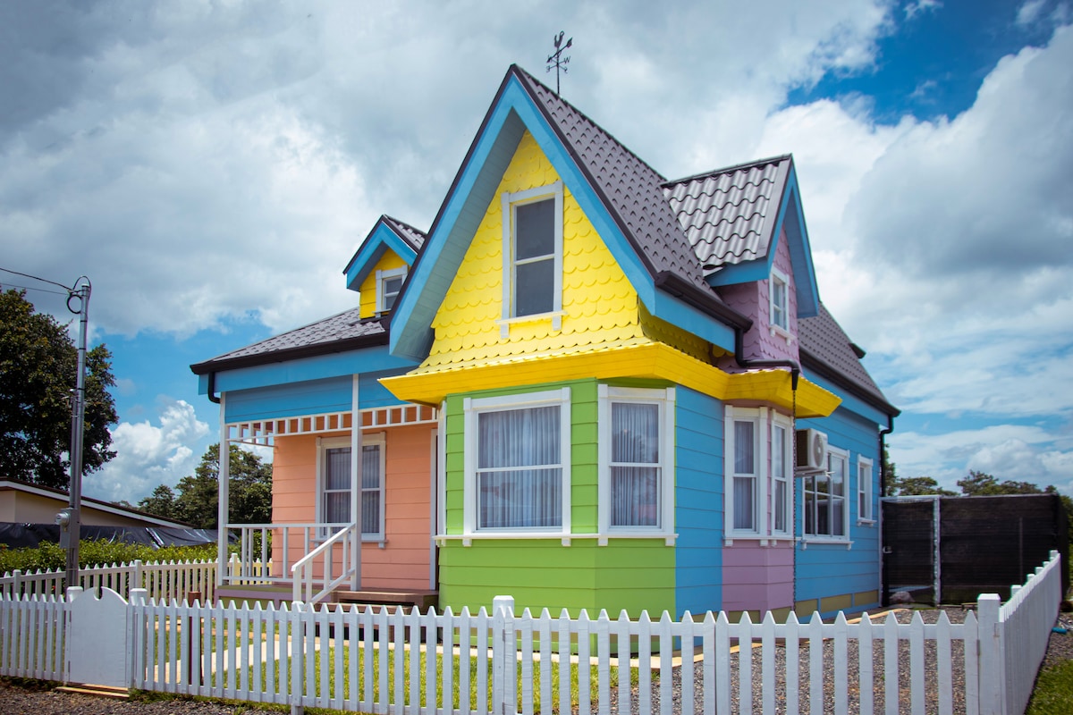 - A one-of-a-kind experience that will lift your spirits to new heights - Perfect for a romantic getaway or a family adventure - Experience the magic of “Up” in this charming replica of the iconic house from the movie. - Located 1.5 km from La fortuna center in "Ecoquintas" complex - Complete replica of the original livingroom from the movie - 2 bedrooms with 55" Smart TVs - 2 full bathrooms (one inside de main bedroom) - Full kitchen. - Terrace next to a private pool area - Arenal Volcano view.