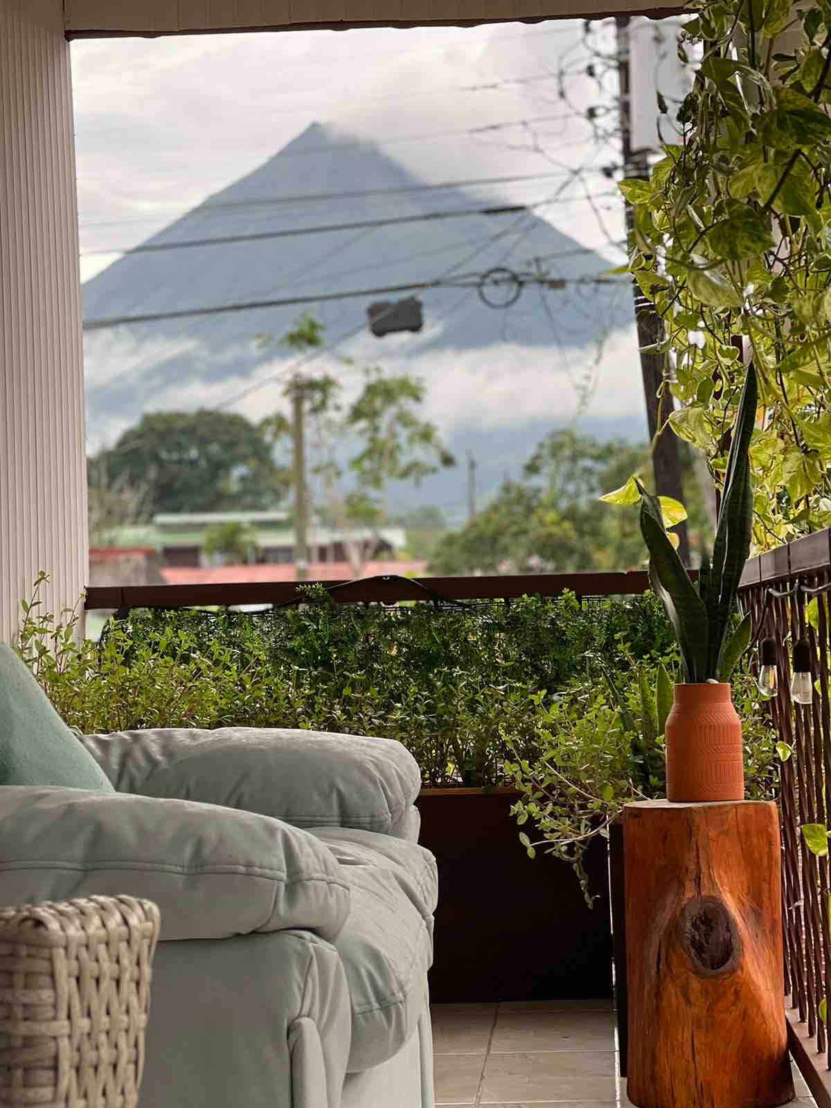 Arenal Home is a cozy and modern apartment in La Fortuna, just two blocks from downtown, located in a quiet and safe neighborhood. Enjoy impressive views of the Arenal Volcano from the balcony and even from your bed. The apartment features a fully equipped kitchen, A/C, 100MB fiber-optic internet, a workstation, cable TV, a queen-size bed, and a sofa bed. Within a short 5-minute walk, you will find restaurants, local shops, pharmacies, the bus station, and more. The ideal place to stay and relax
