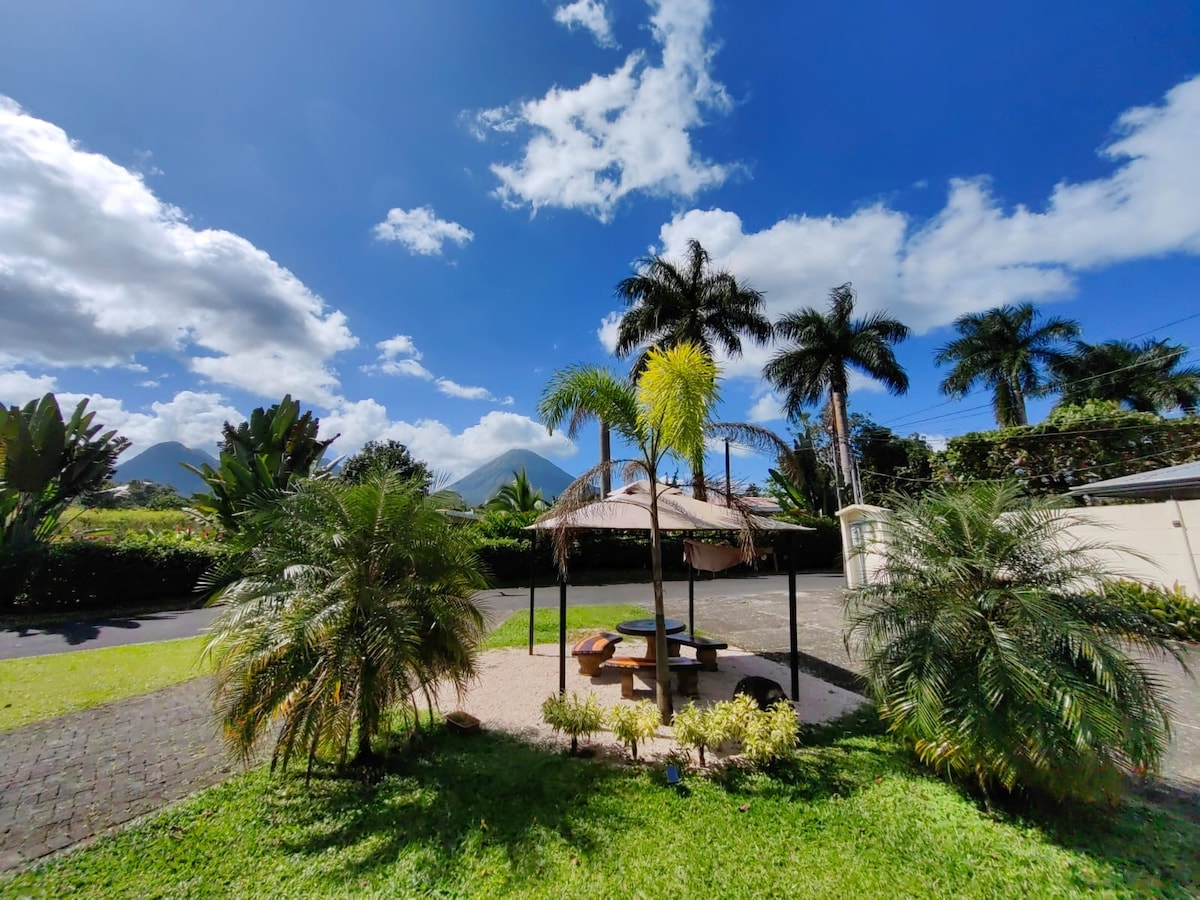 Star your next adventure at Boho Chic. located in the downtown of La fortuna easy access to all main attractions. Walking distance to restaurants, shops and supermarkets. Perfect for people that like to be close to the town and do not want to worry about driving to much. The house has 4 bedrooms, living-room, kitchen, dining room and a great space in the backyard to enjoy a perfect relaxing day. Also on days that is not cloud you will be able to see the beautiful volcano from the backyard.