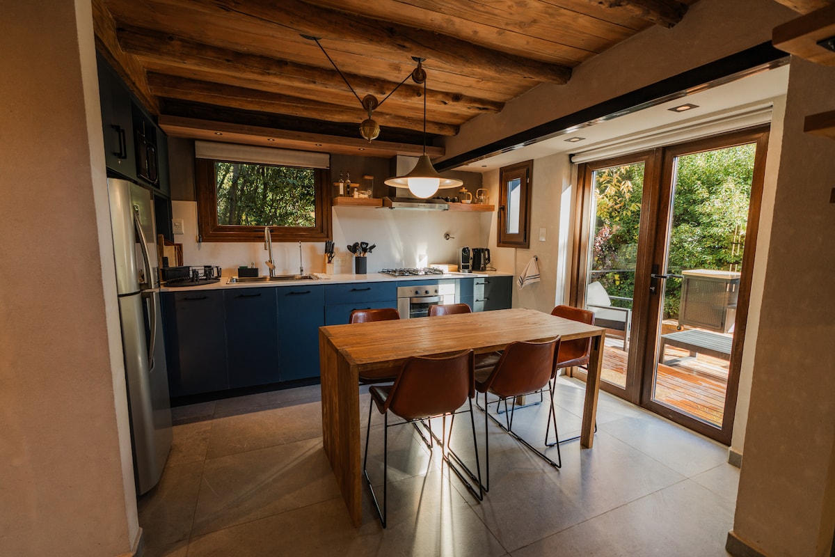 Espectacular Cabaña moderna de diseño en Villa Lago Gutierrez. En medio de un Bosque Nativo de Cipreses, a 600m del lago, 15 minutos en auto hasta el Cerro Catedral y 15 minutos en auto a la ciudad. Ideal para una escapada a la naturaleza para desconectar y descansar. O refugio de montaña ideal para un viaje de Ski con amigos o familia. Ideal para dos personas o pareja con dos chicos. Bandeja de Desayuno de cortesia! Incluida para el primer dia. No es buffet. Se deja bandeja con elementos!