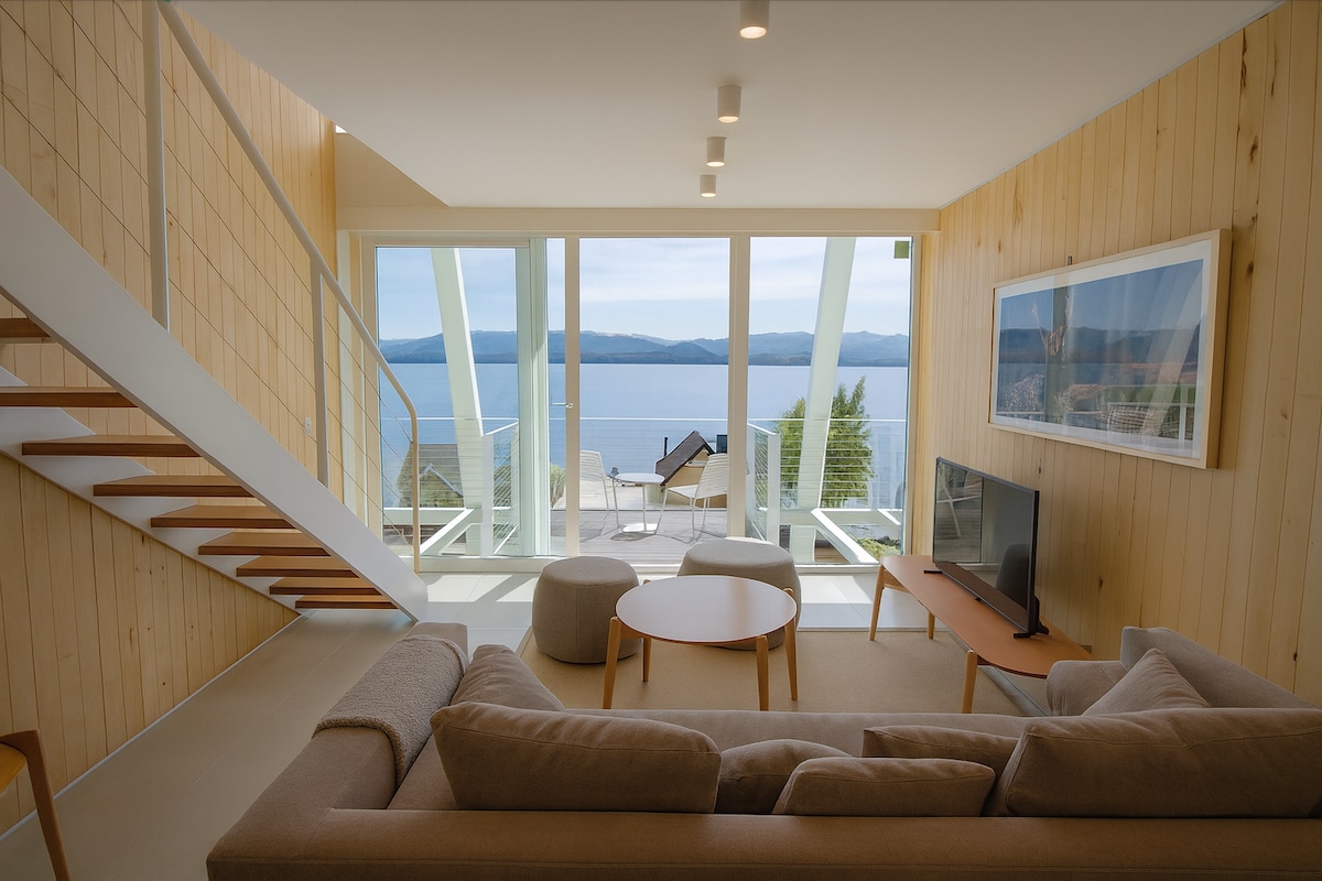 Welcome to your boutique retreat facing the majestic Lake Nahuel Huapi, featuring panoramic views, a heated pool, jacuzzi, and gym. Modern design and comfort, just 15 minutes from downtown Bariloche. Located in a peaceful area, ideal for couples or travelers seeking relaxation. Wake up to unique views of the lake and mountains, surrounded by nature and Patagonian style.