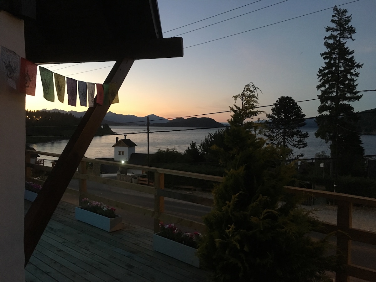 Hostal semi-céntrico con vista al Lago. Amplios espacios comunes para disfrutar en familia y amigos del mejor hospedaje en Bariloche. Te invitamos a descubrir juntos de nuestra mágica vista y cálida hospitalidad.