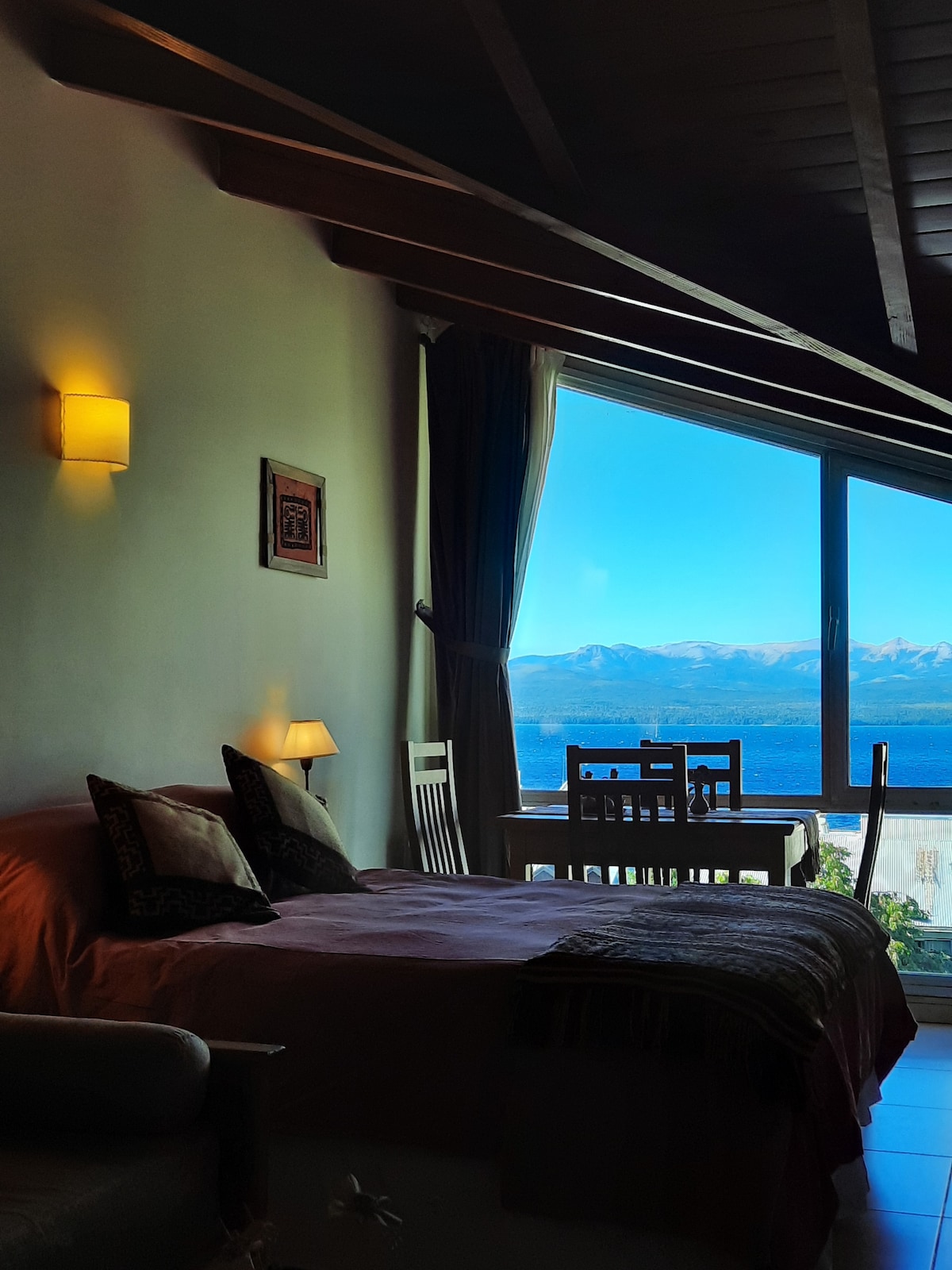 Comfortable and fully equipped, with amazing views of Lake Nahuel Huapi and Cerro Catedral. Its sunsets are magical!!! Close to Playa Bonita, restaurants, supermarkets, and public transport. Perfect for relaxing, enjoying nature, or skiing in winter