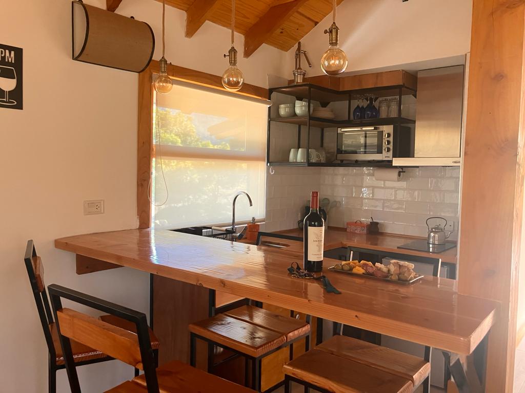 Descubre la armonía del bosque en esta luminosa y amplia casa para 5 personas. Su construcción de troncos y piedras te hará sentir en conexión plena con la naturaleza. En el living podrás distenderte, ya que posee un piano, hamaca paraguaya, televisión y un hogar para disfrutar de noches acogedoras. En el terreno, encontrarás un chulengo y una mesa para comer al aire libre. Ubicada a 5 km de Cervecería Patagonia y Colonia Suiza podrás disfrutar de paisajes imponentes de Circuito Chico.