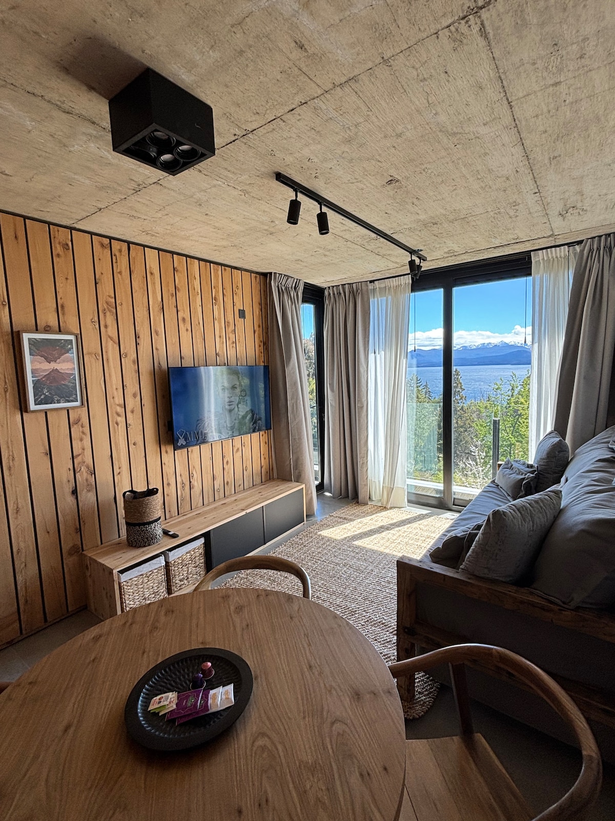 Welcome to your boutique retreat facing the majestic Lake Nahuel Huapi, featuring panoramic views, a heated pool, jacuzzi, and gym. Modern design and comfort, just 15 minutes from downtown Bariloche. Located in a peaceful area, ideal for couples or travelers seeking relaxation. Wake up to unique views of the lake and mountains, surrounded by nature and Patagonian style.