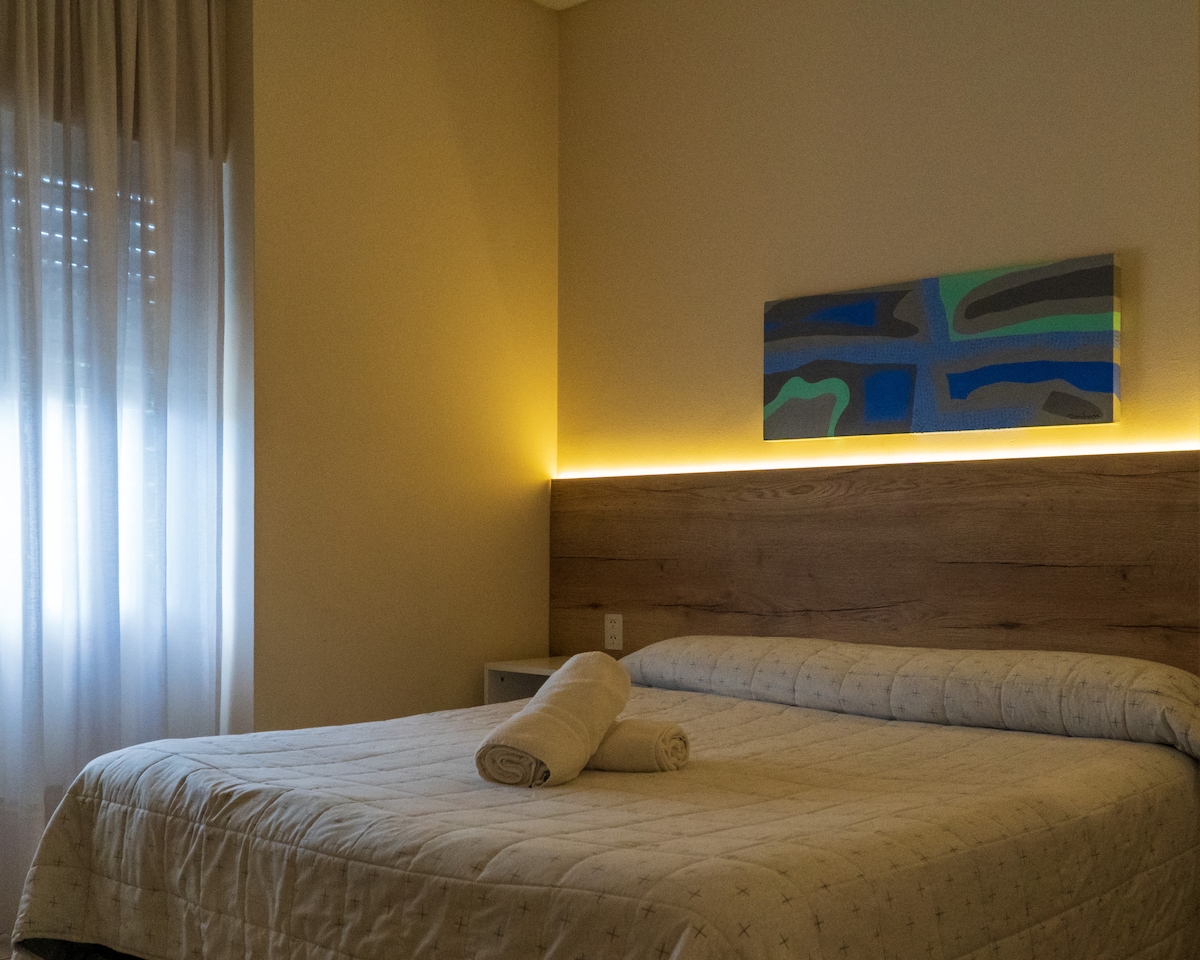Apartamento con comodidades como: - Cochera propia techada y sin costo - Estar en una zona céntrica - Anafe para calentar agua - Sobre de café, leche, te, azúcar, edulcorante, etc. de cortesía - Patio para tus comodidades - Heladera para guardar tus alimentos/bebidas - Parrilla para tus asados