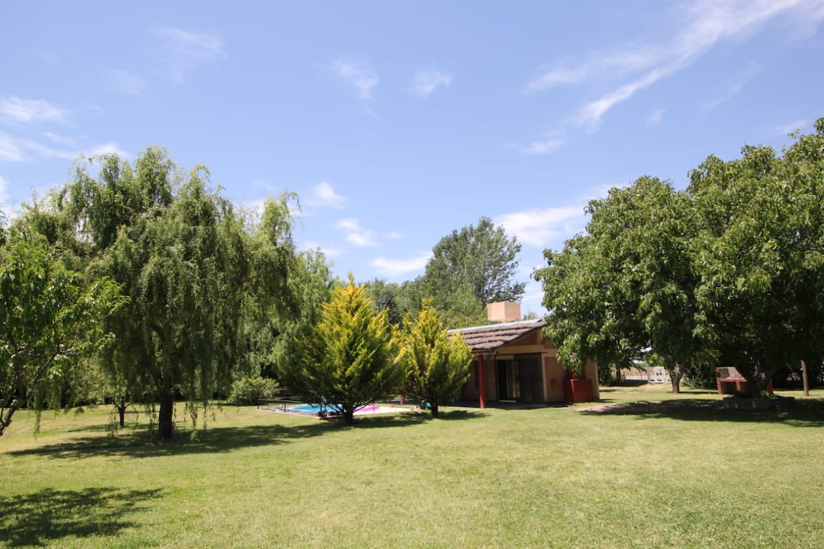 Un lugar unico, dentro de un añoso parque. Totalmente equipada. Excelente ubicacion, a la entrada del circuito turistico mas importante que es Valle Grande y Cañon del Atuel y a 10 minutos del centro. La cabaña tiene 2 dormitorios, un baño, parrilla y estacionamiento privado, heladera, microondas, horno, calefaccion a gas, aire acond.,microondas, secador de cabello, incluye ropa blanca. Actividades cercanas: rafting, Canopy, cabalgatas, paseo en catamaran, senderismo, tirolesa, kayak.