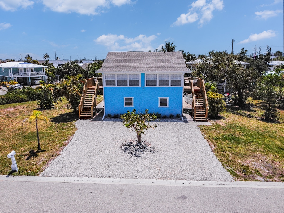 This picturesque Airbnb is a hidden gem nestled along a canal, one minute boat ride to the Caloosahatchee River. The living room, bathed in natural light is perfect for taking in the scenic views. The spacious bedroom has a king-size bed, ensuring a night of blissful rest. The full kitchen is equipped with all modern appliances. Close to Sanibel & Fort Myers Beach. Bring your boat & dock it on the seawall, ready to set sail whenever your heart desires. Book now - your coastal paradise awaits!