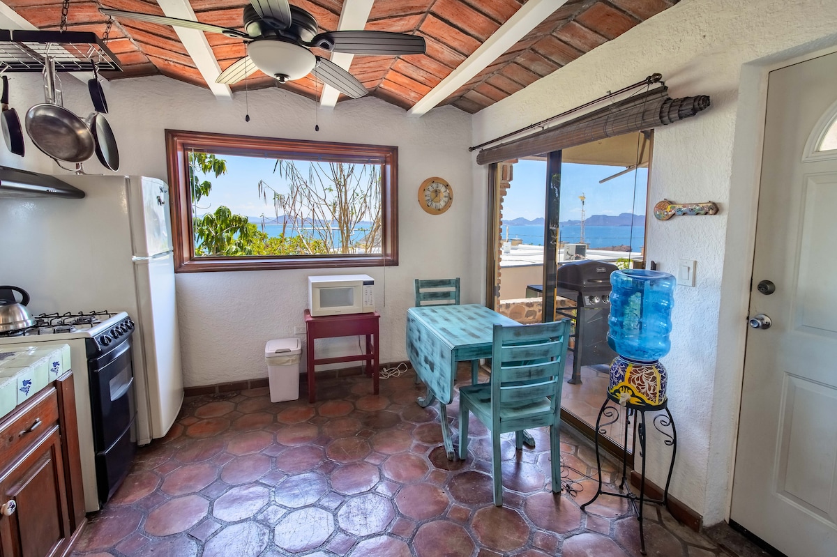 I am in Mexico, the apt has a Mexican flavor. It is very comfortable, has a new trundle bed, a new very comfortable double bed. The views are besutiful, Mountains, and the Sea of Cortez, end of street has a small beach. Many beautiful beaches in San Carlos. I am very close to the town. Lots of restaurants, cantinas, shopping, a Market every Saturday, local items, etc., Hiking. Atv., Rentals, kayaks too. Lots of kayaking.