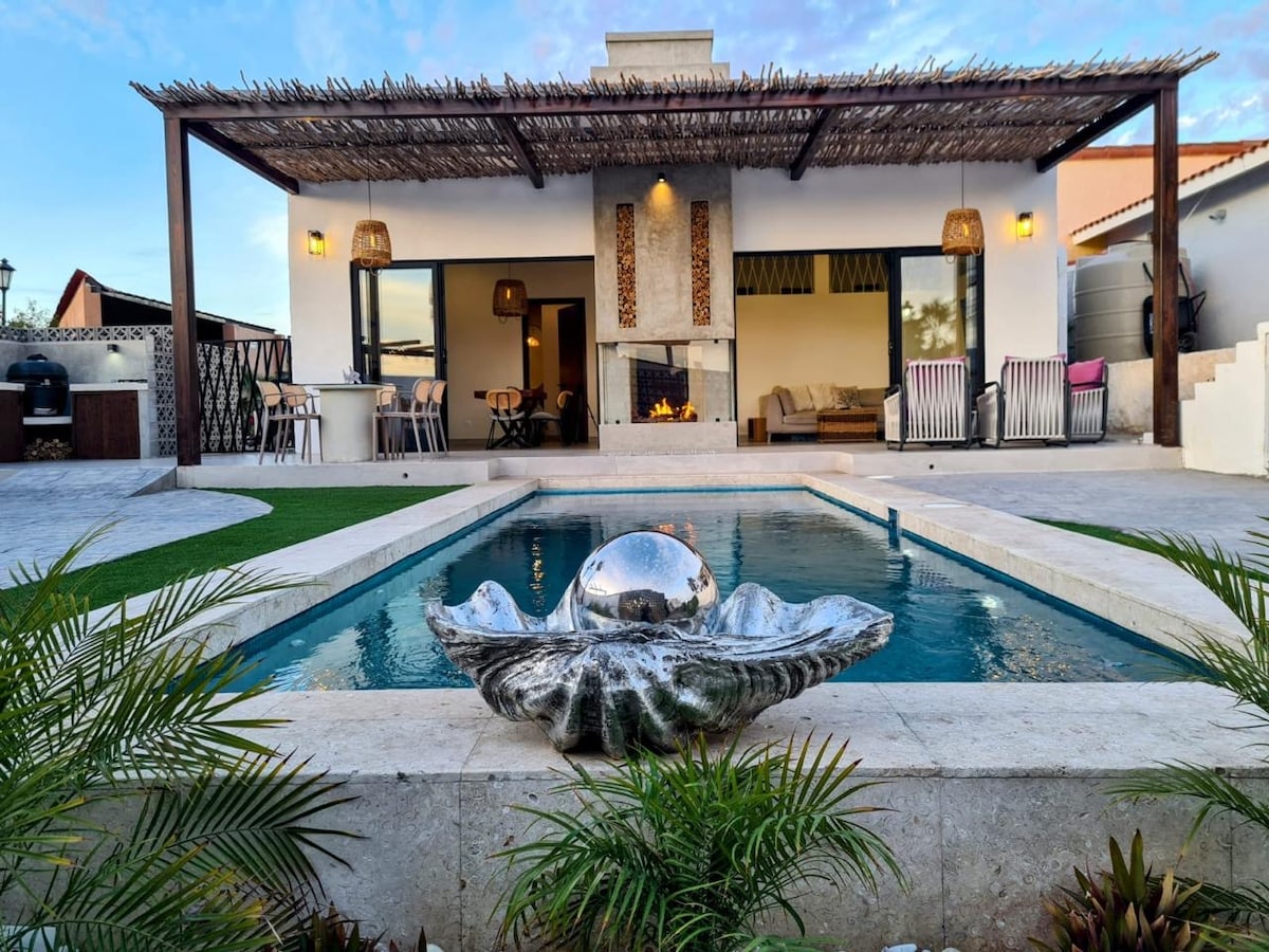 Beachfront home with private pool and direct private beach access. The home is inside a small gated community with security guard 24/7 Private Pool with Heater (Upon request with extra fee) Inside the community there is a shared area with pool, tennis and pickle ball court plus a Basketball/soccer concrete court. Very calm residential area