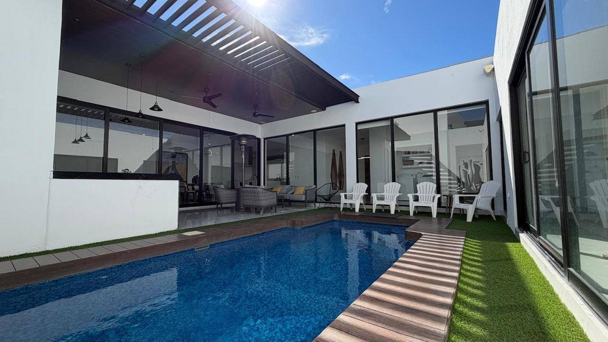 Casa completamente nueva/equipada para recibirte a ti y tu familia o amigos para disfrutar momentos inolvidables, cuenta con Terraza para observar los atardeceres únicos, área con asador, lavadero, cisterna 5000 L, alberca en área común, cancha de PickleBall/Padel, área de juegos para niños, se encuentra a menos de 5 min en auto de la playa y restaurantes. La casa cuenta con estacionamiento propio, cámaras de vigilancia externa y llegada por cuenta propia.