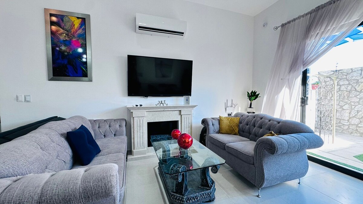 Beachfront home with private pool and direct private beach access. The home is inside a small gated community with security guard 24/7 Private Pool with Heater (Upon request with extra fee) Inside the community there is a shared area with pool, tennis and pickle ball court plus a Basketball/soccer concrete court. Very calm residential area