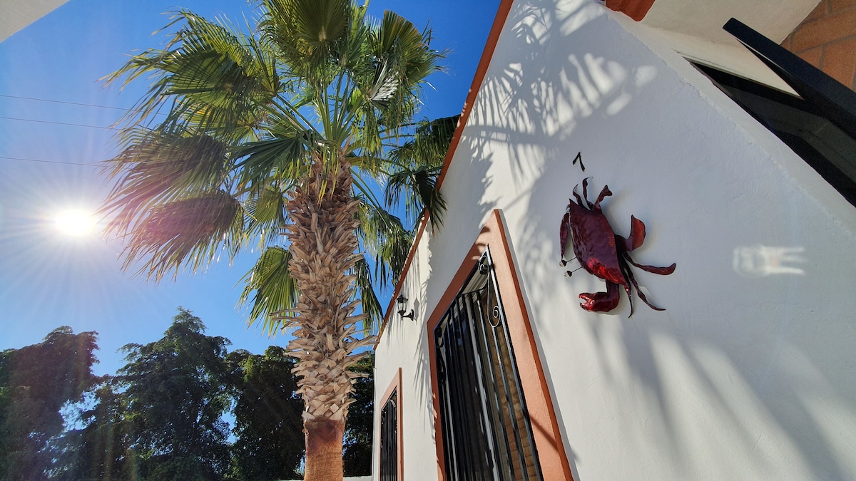 ¡Bienvenidos! Nuestro alojamiento es una casa privada totalmente remodelada ubicada en una zona tranquila, a dos cuadras del Malecón y del centro de Guaymas y a solo 15 minutos de las playas de miramar y a 20 minutos de las hermosas playas de San Carlos en automóvil. Cuenta con todos los servicios basicos, al igual que Wi-Fi, un ambiente agradable, decoración moderna y un patio trasero amplio con su asador.