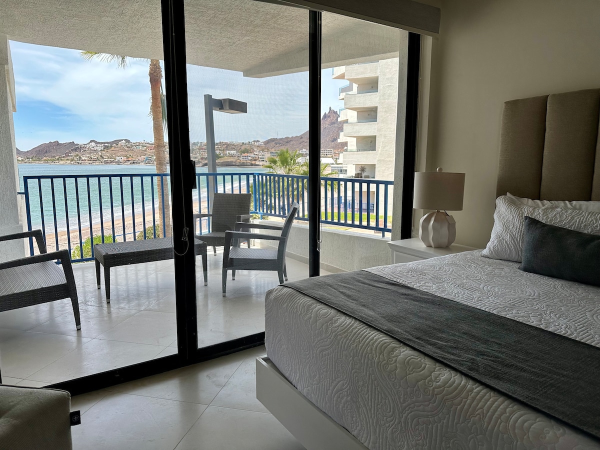 Totalmente renovado cuenta con todo lo necesario para que estancia sea de lo mas placentera con una hermosa vista a la alberca, playa y cerro Tetakawi. Condominio frente a la playa para 2 personas en segundo piso. Cuenta con 1 cama King Size cocina completa , sofa, lavadora secadora y terraza con la vista al atardecer más hermoso en San Carlos .