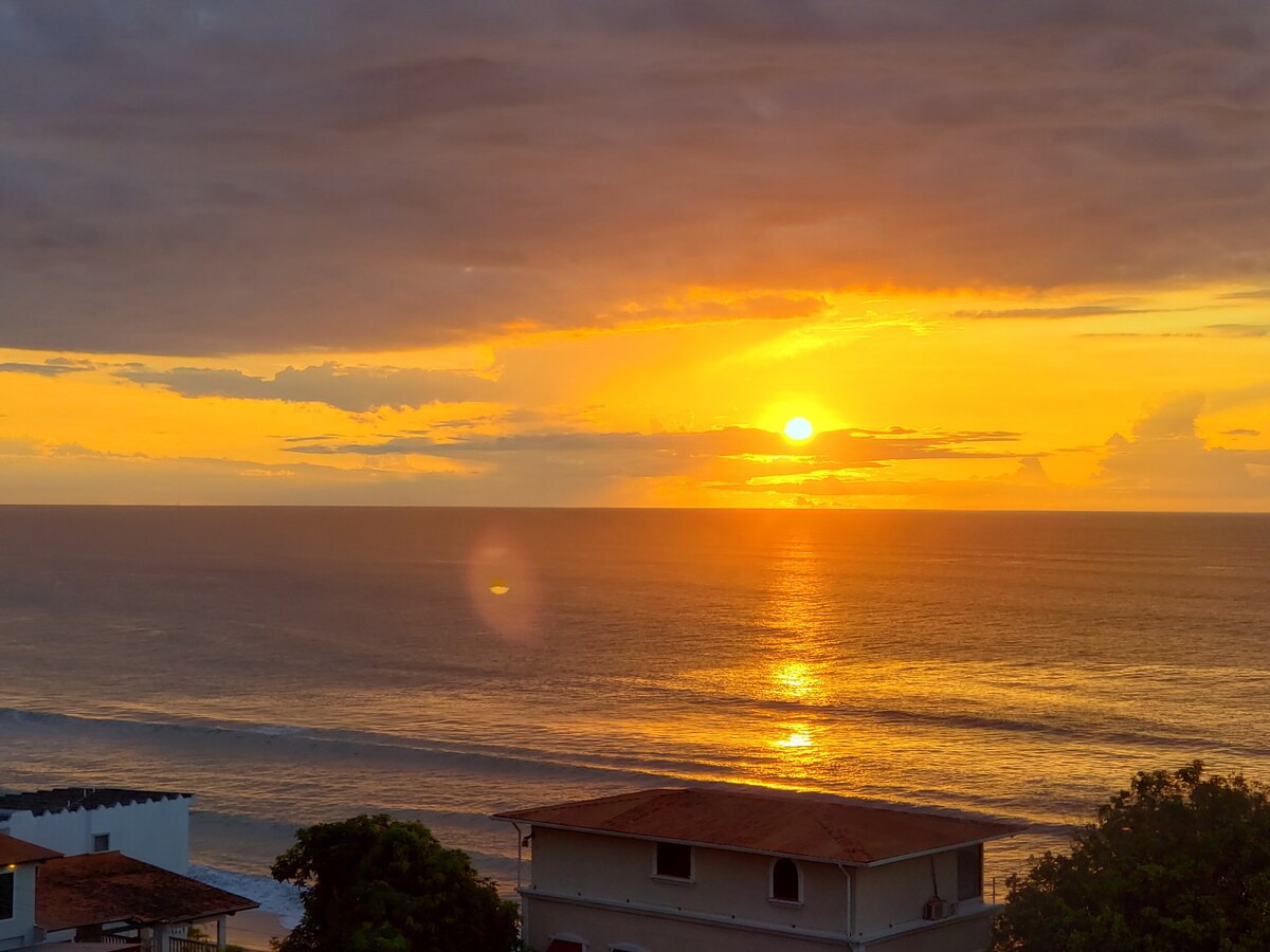 Lindo apartamento frente al mar , con todas comodidades, espacios elegantes y confortables. Contenido: dos recamaras totalmente independientes dos baños con duchas Cocina completamente equipada centro de lavado gratis Aires acondicionados en todas las habitaciones dos salas, una en el balcón con vista panorámica y otra sala con TV Amplio, acogedor balcón privado con tumbona frente al mar wifi Área de BB y piscinas Muy cerca de la escuela de Surf y restaurantes locales e internacionales.