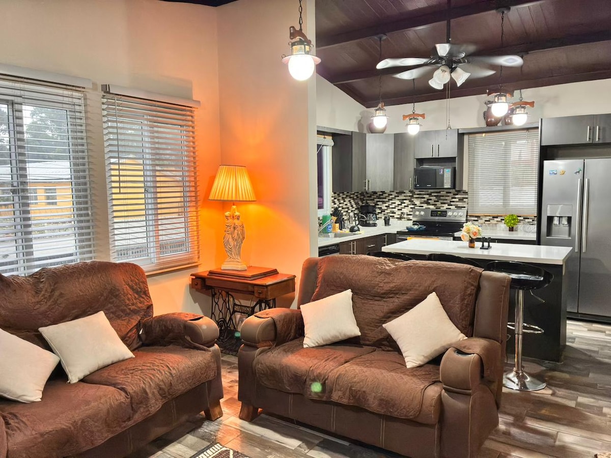 Apartamento entero tipo Loft. Cuenta con una hermosa terraza, 1 dormitorio abierto con cama Queen y A/C, baño privado , sala, comedor y cocineta totalmente equipada, lavadora y secadora de ropa. Con smart TV de 58" para entretenimiento y wifi. Incluye 1 parqueo gratuito en las instalaciones.