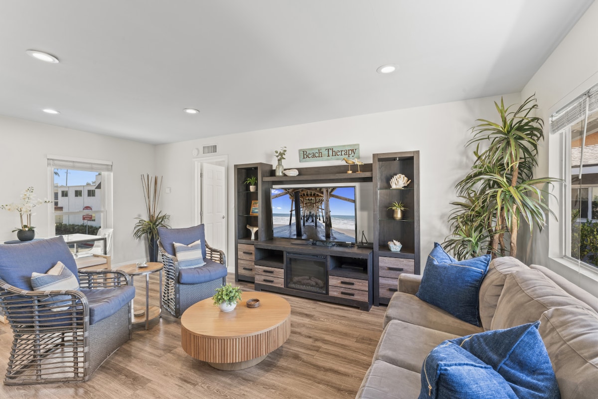 Sip wine from your private rooftop deck as sailboats catch the last light at sunset — steps to the sand, Newport Pier, Mom's Beach, waterfront dining and cafes. Designed for laid-back luxury with rare A/C & garage parking. Prime location — no car needed. This Guest Favorite comes stocked: ✓ Rooftop harbor view ✓ Rare A/C ✓ Garage + EV charger ✓ Beach towels, chairs, boards ✓ Pro kitchen, wine & coffee bar ✓ Warm outdoor shower ✓ 75" TV + Sonos + fast Wi-Fi ✓ Cozy gas fireplace Dates go fast.