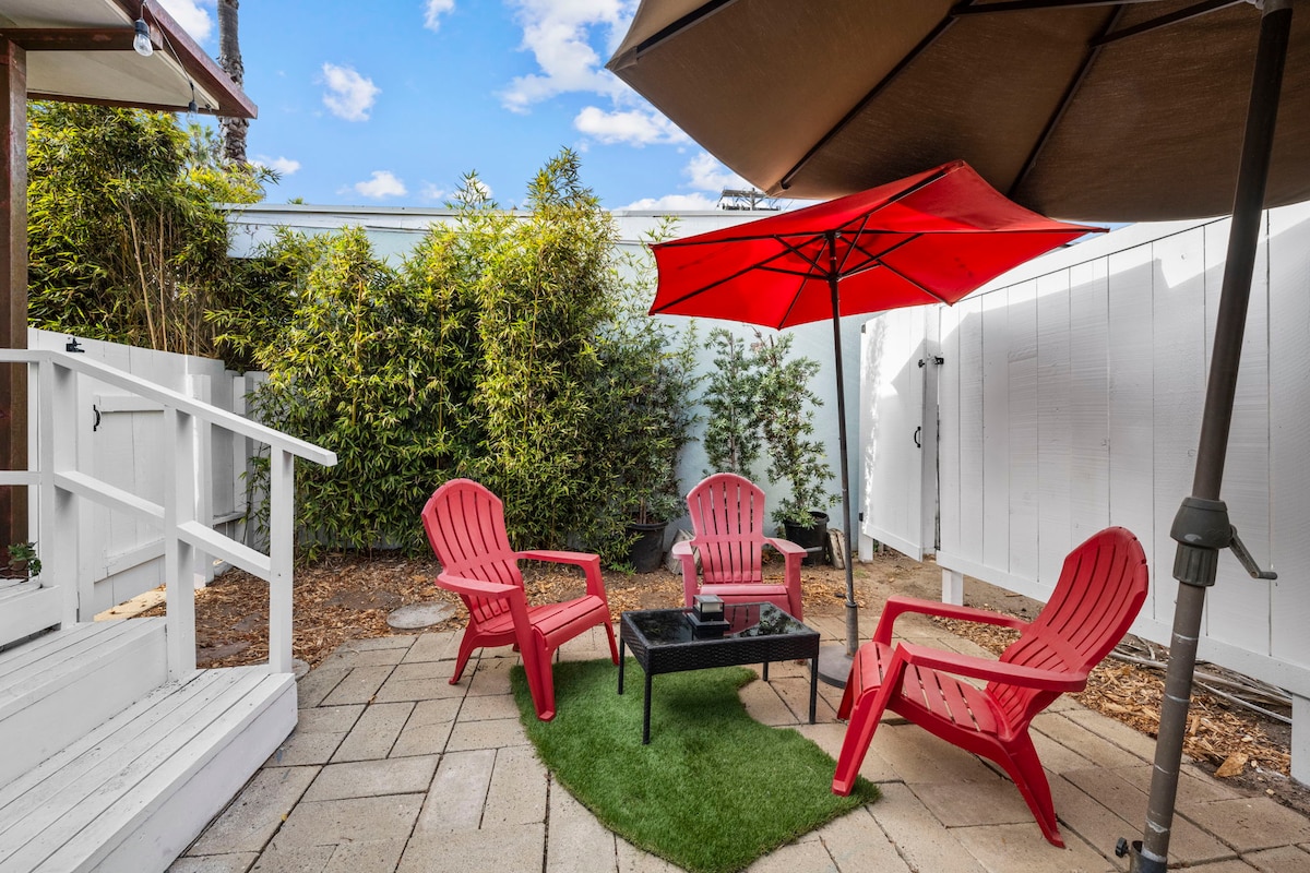 Our cute and stylish mini-bungalow studio is located 4 blocks from the beach! Charming, beachy, bohemian, old-school Corona del Mar vibes. Friendly neighbors. Incredible sunsets. We have everything you need for a fun stay near the beach. Walking distance to the beach, grocery stores, local pizza & taco shops, fine dining, and farmer's market. Awesome shopping on PCH, Fashion Island & Laguna Beach. Great place to retreat, get work done, or be inspired.