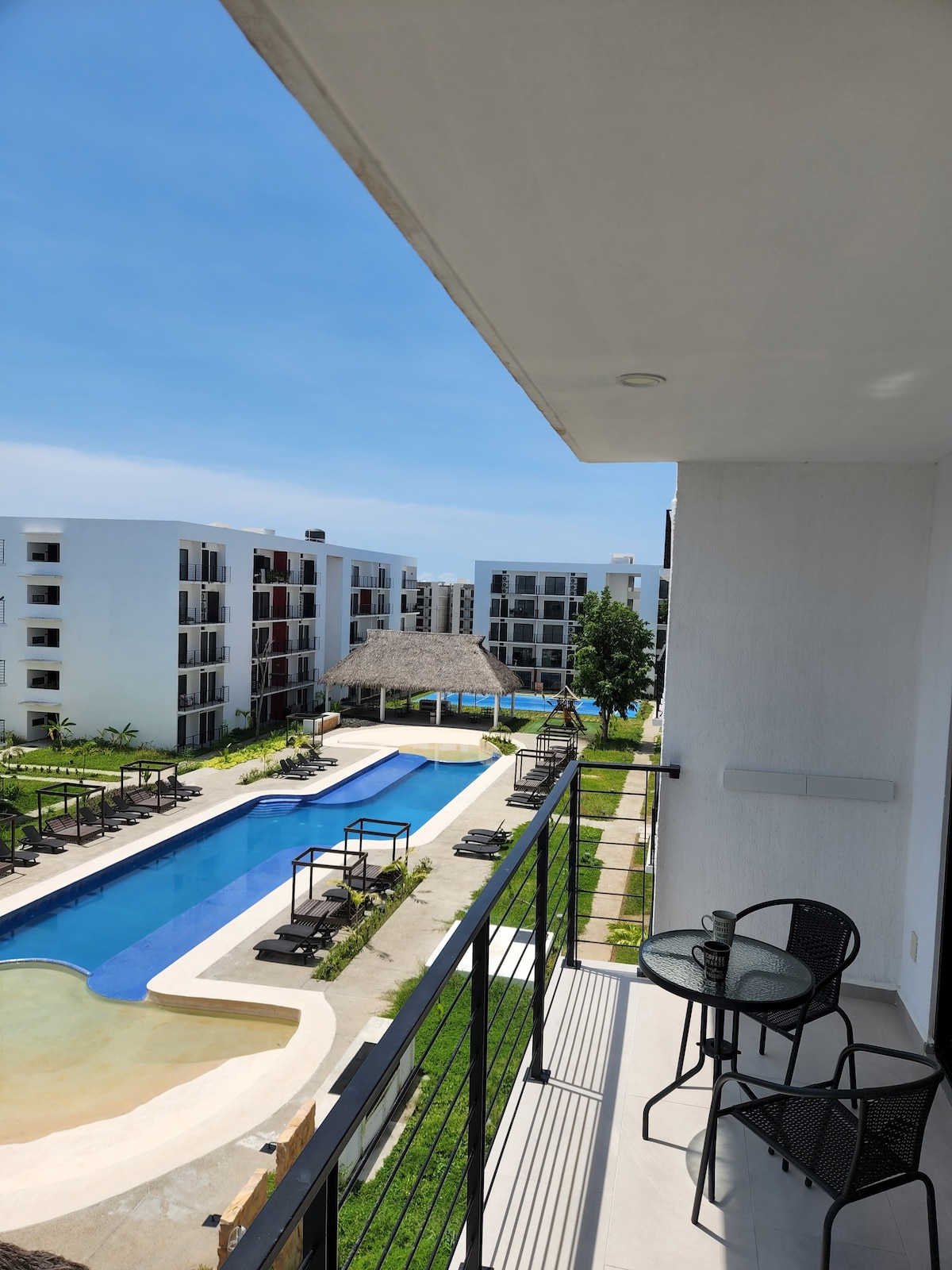 🏖️ Disfruta de un departamento cómodo y bien equipado para hasta 6 personas, en una zona tranquila y segura. ✅ Aire acondicionado ❄️ ✅ TV con internet 📺 ✅ Sofá cálido 🛋️ ✅ Balcón privado 🌅 ✅ Alberca en el condominio 🏊♂️ A solo 10 minutos de las playas de Nuevo Vallarta 🏖️ y cerca de supermercados 🛒 y centros comerciales. Ideal para familias y viajeros que buscan descanso y comodidad.