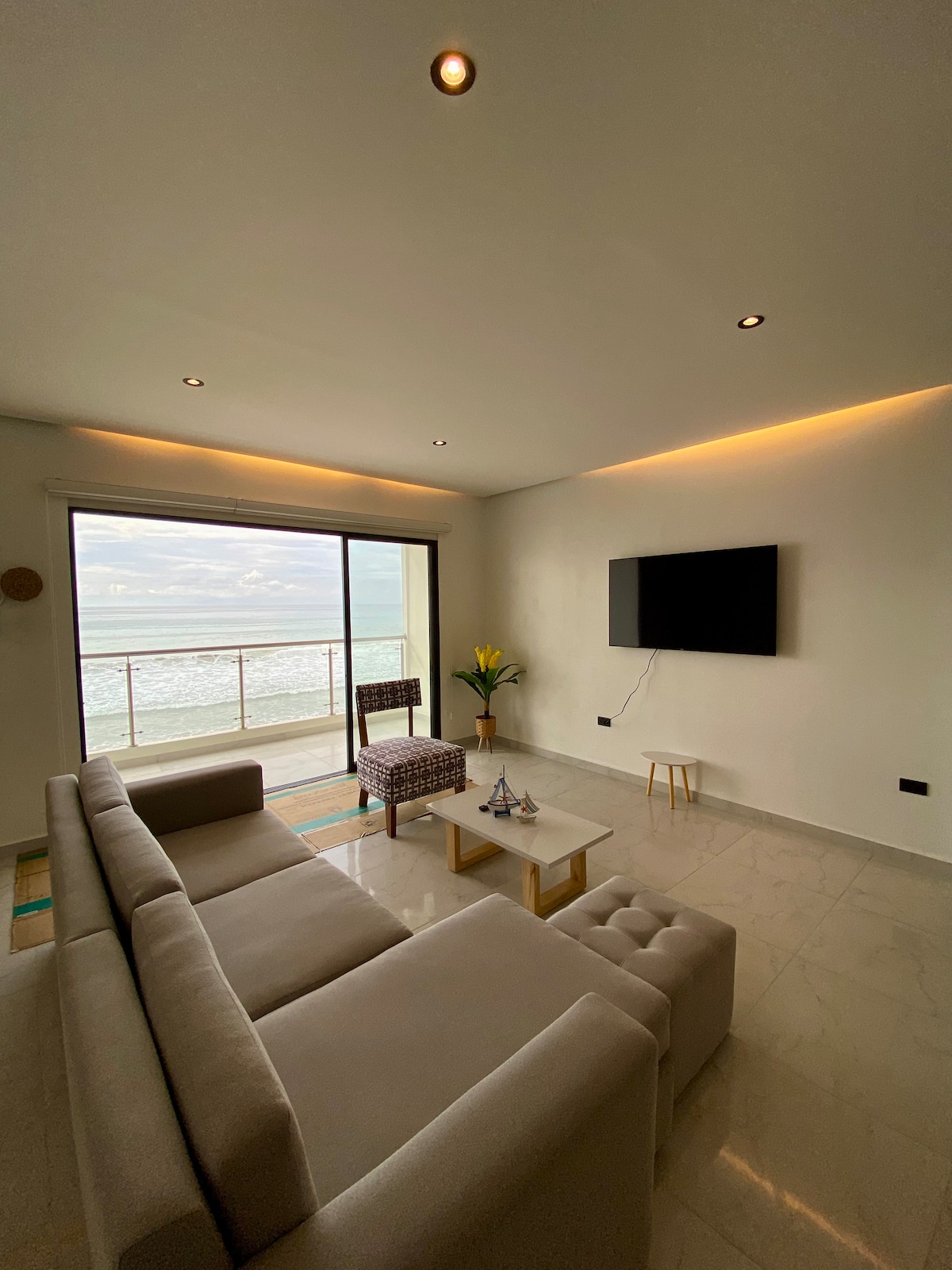 Disfruta de este lujoso departamento frente al mar en exclusivo conjunto privado de Manta(Ciudad del Mar).Con dos habitaciones, cocina completamente equipada integrada a un espacioso living-comedor, balcón con vistas impresionantes en primera línea y tres baños, esta propiedad es el escape perfecto para tus vacaciones. Todo conectado y controlado por voz a través de las Alexa's ubicadas estratégicamente en cada ambiente. Sumérgete en el lujo, la tranquilidad y la conveniencia en 'OceanSmart'