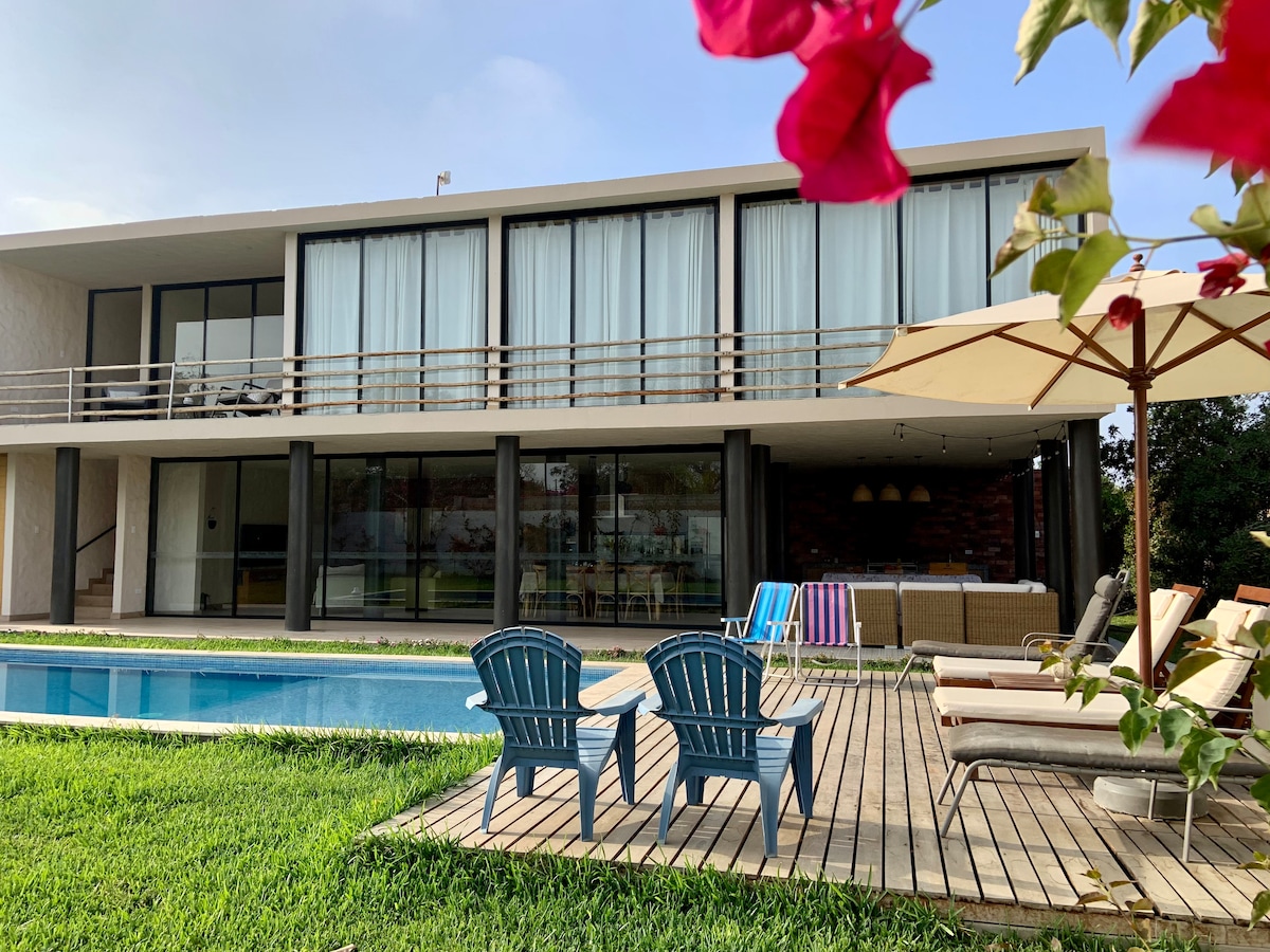 Casa de campo con todas las comodidades en Condominio Fundo Hass. Aléjate del bullicio de la ciudad a dos horas de Lima y pasa unos días en un ambiente totalmente tranquilo y en contacto con la naturaleza. Cuatro cuartos, dos con camas queen y dos con camas de dos plazas, con baños privados. Espacios sociales para compartir en familia, inmenso jardín para acampar, piscina, terrazas, parrilla, lavaplatos, lavadora, secadora, gran refrigerador, mezzanine, salas de estar, estacionamiento interior.