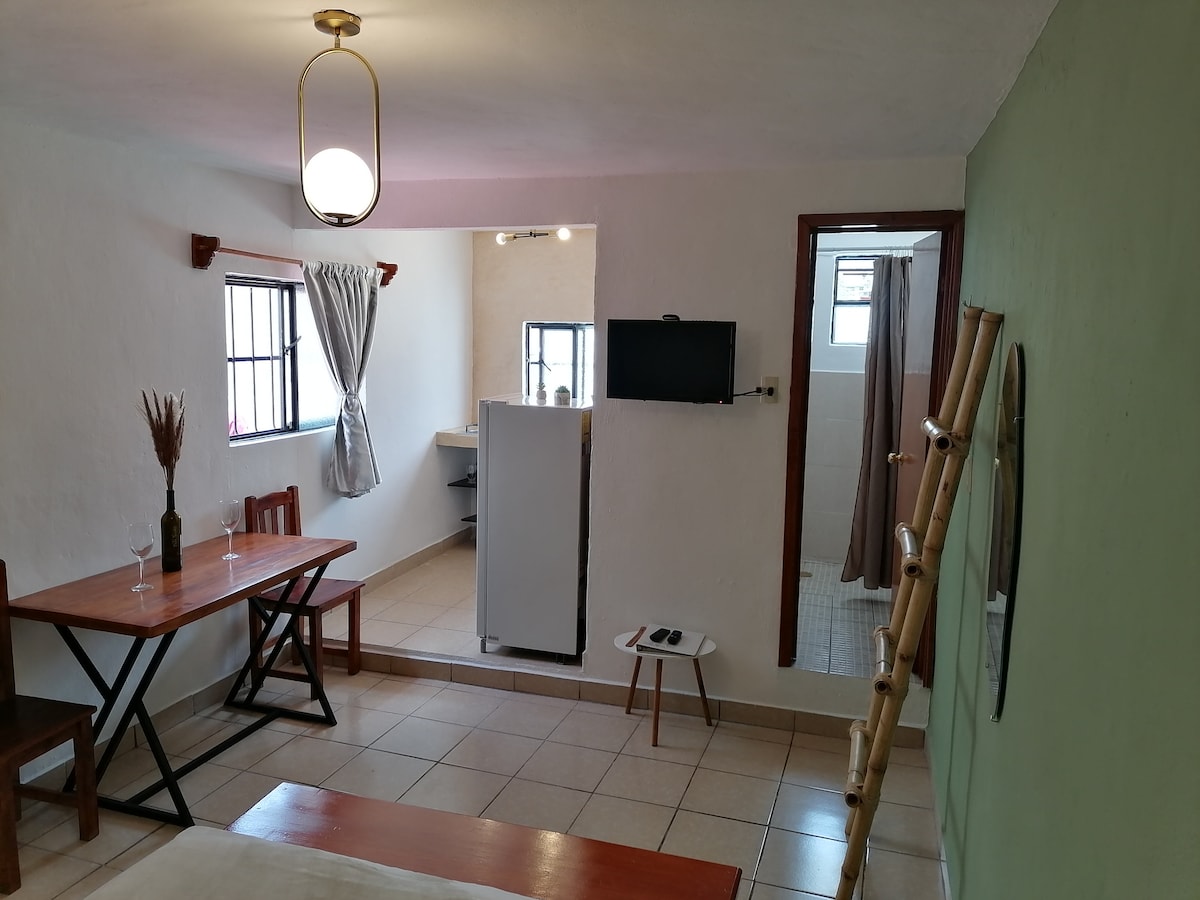 Excellent location, 5 minutes walk from the ADO/OCC bus terminal and local buses, 10 minutes from the center of San Cristobal. A small studio for 2 people with kitchen, private bathroom, television, hot water and independent entrance. Outside we have a table and chairs so you can eat your food, read, etc. in addition to a hand washing area. You will be staying in a safe and quiet typical San Cristobal neighborhood, surrounded by local people to complete your experience.