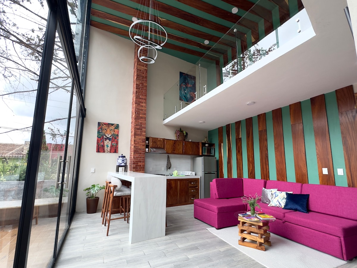 Sumérgete en la tranquilidad y elegancia de nuestro exclusivo loft en medio del bosque, ideal para crear recuerdos inolvidables. Disfruta de la serenidad del entorno natural, brindándote una escapada perfecta del ajetreo diario. A solo 10 minutos del vibrante centro histórico de San Cristóbal de las Casas, combina la paz y privacidad del bosque con la riqueza cultural local. Perfecto para una estancia relajante o prolongada, este loft es tu santuario en la naturaleza chiapaneca.