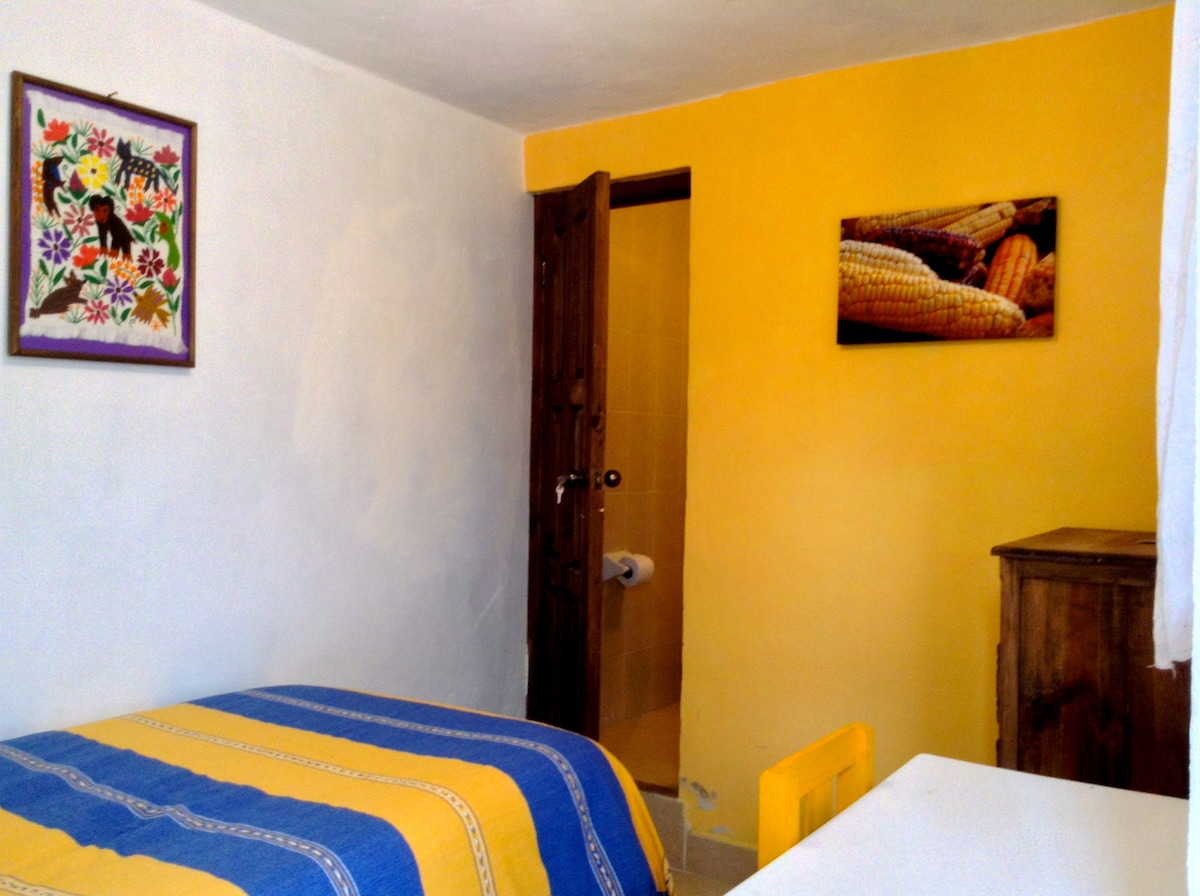 A comfortable private room in ' Casita MamaZotas'. We are a welcoming guesthouse, a home away from home. In this room there is a desk suitable for workspace , we provide hi-speed wifi. A place to relax or work.
