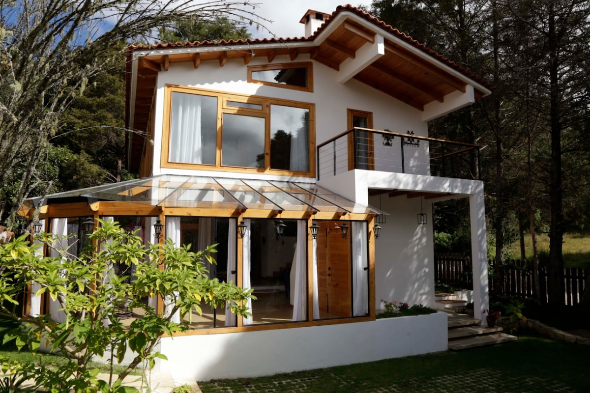 Quédate en está espectacular cabaña de dos pisos en el bosque. Sus paredes y techo alto de madera son un sueño acogedor. Haz un asado en la terraza y ve el partido, enciende la chimenea, cena en familia, o destapa un vino para disfrutar en la lujosa bañera con ventanal triangular y despierta entre pinos. Estamos a sólo 10 minutos del centro de San Cristóbal de las Casas en un condominio boscoso, de fácil acceso, con estacionamiento.
