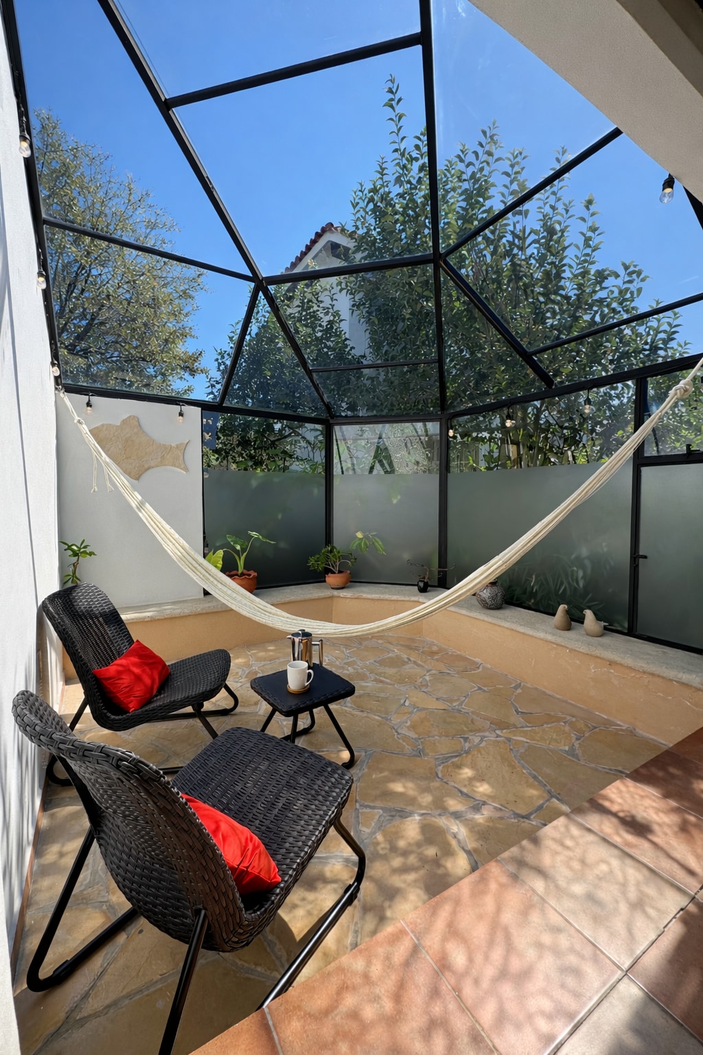 Casa Río está en planta baja, tiene un solarium hermoso con vista al jardín y es muy luminosa. Este bello alojamiento forma parte de Casas del Agua, seis estancias íntimas en medio de la naturaleza donde habita el silencio y el canto de los pájaros. A solo unos minutos en auto/taxi del centro, pero a la distancia correcta para descansar tranquilamente en este oasis de paz. Cuenta con cama King size, internet estable de fibra óptica y todo lo necesario para una estancia larga o escapada corta.